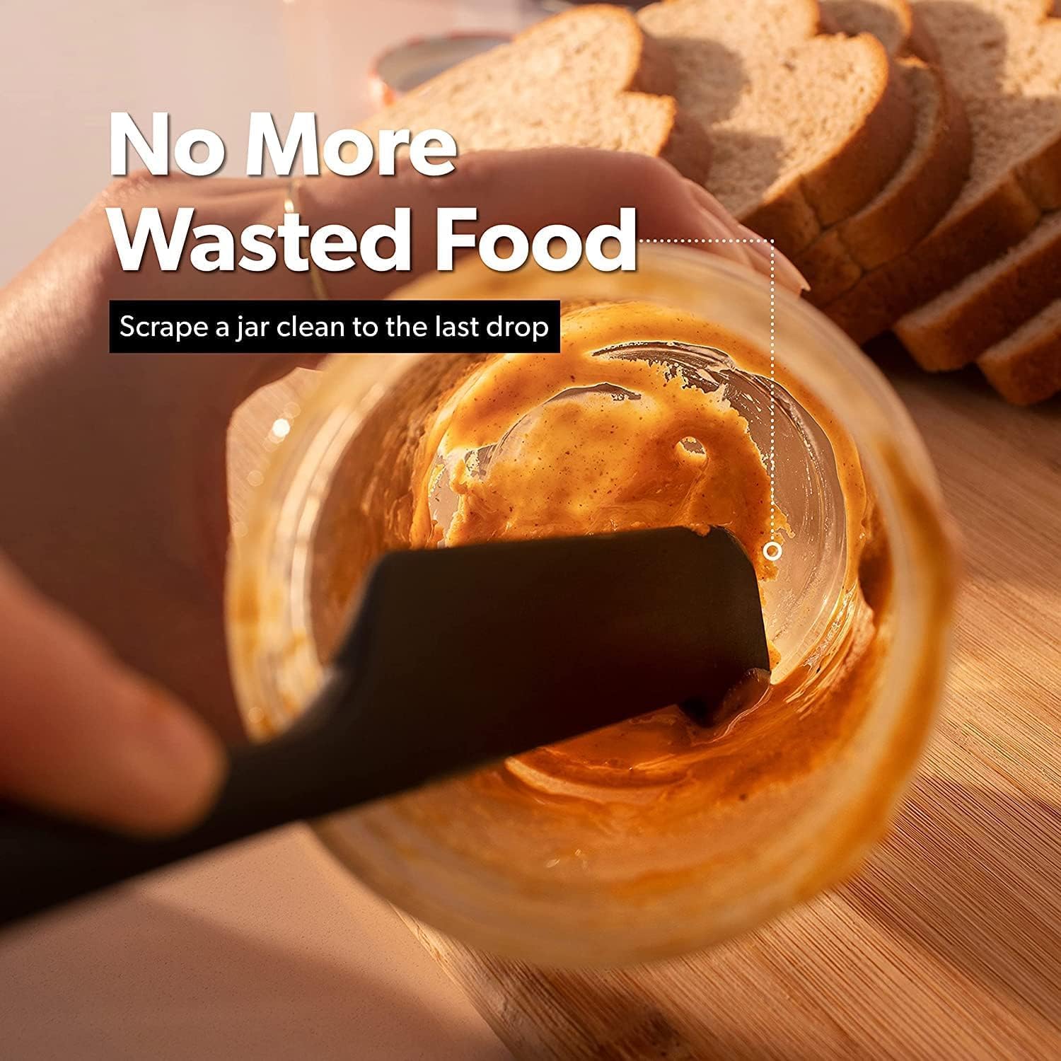 - ELIMINATES WASTED FOOD - Our innovative and revolutionary design ensures you can pick a jar or blender clean without getting your hand in the food. Unlike cheap plastic utensils that are ineffective at getting too hard to reach spots in a jar or blender, we have created silicone spatulas that will easily and completely remove mayo, peanut butter, and other foods hassle free, to the last drop. The result, no more wasted food.