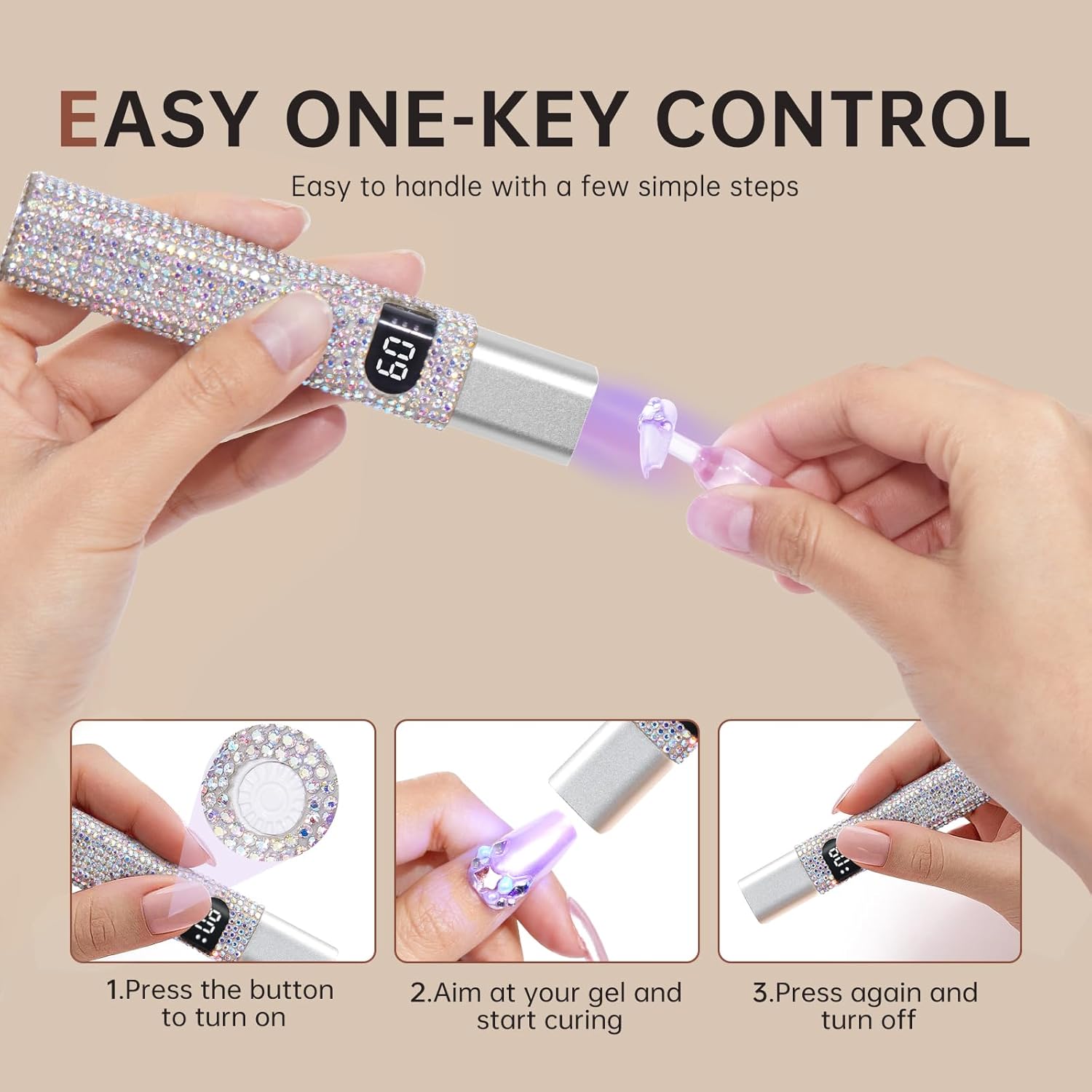 - 【Diamond Surface and 5X fast Curing】This uv nail light adopts an eye-catching shiny and fashionable diamond surface design.Equipped with high-quality lamp beads emitting 365 + 405nm and convex lens to achieve 5 times amplified spotlight, suitable for most gel nails and reduces curing time and ensures evenly curing from multiple angles