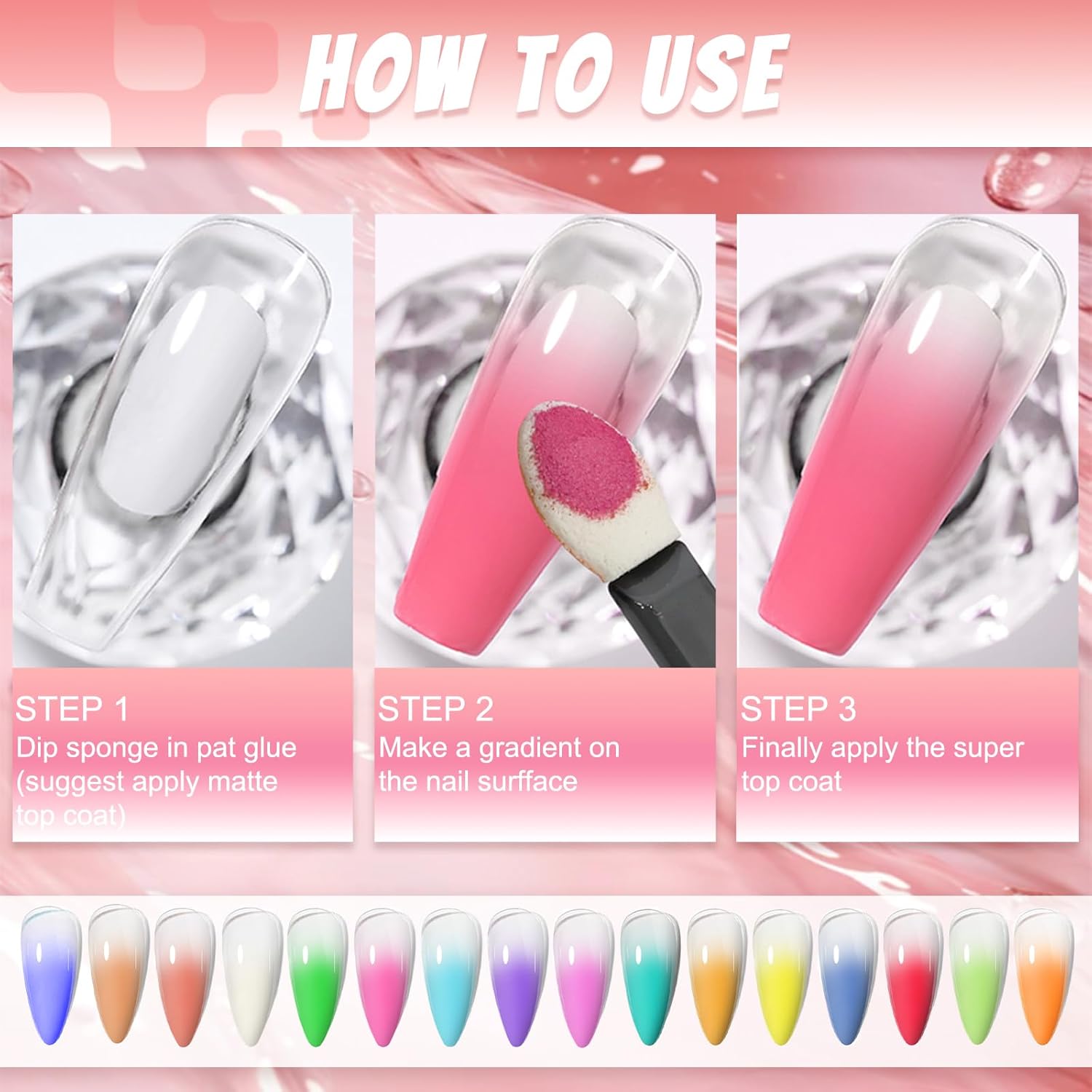 - 【Easy to Use and Remove】Simply apply the ombre nail powder onto a cured nail polish or gel base, seal it with a top coat, and enjoy stunning nails that will catch everyone's attention. When it's time for a new look, the powders can be easily removed with nail polish remover. Rub with a sponge stick will be easier to get amazing effect.