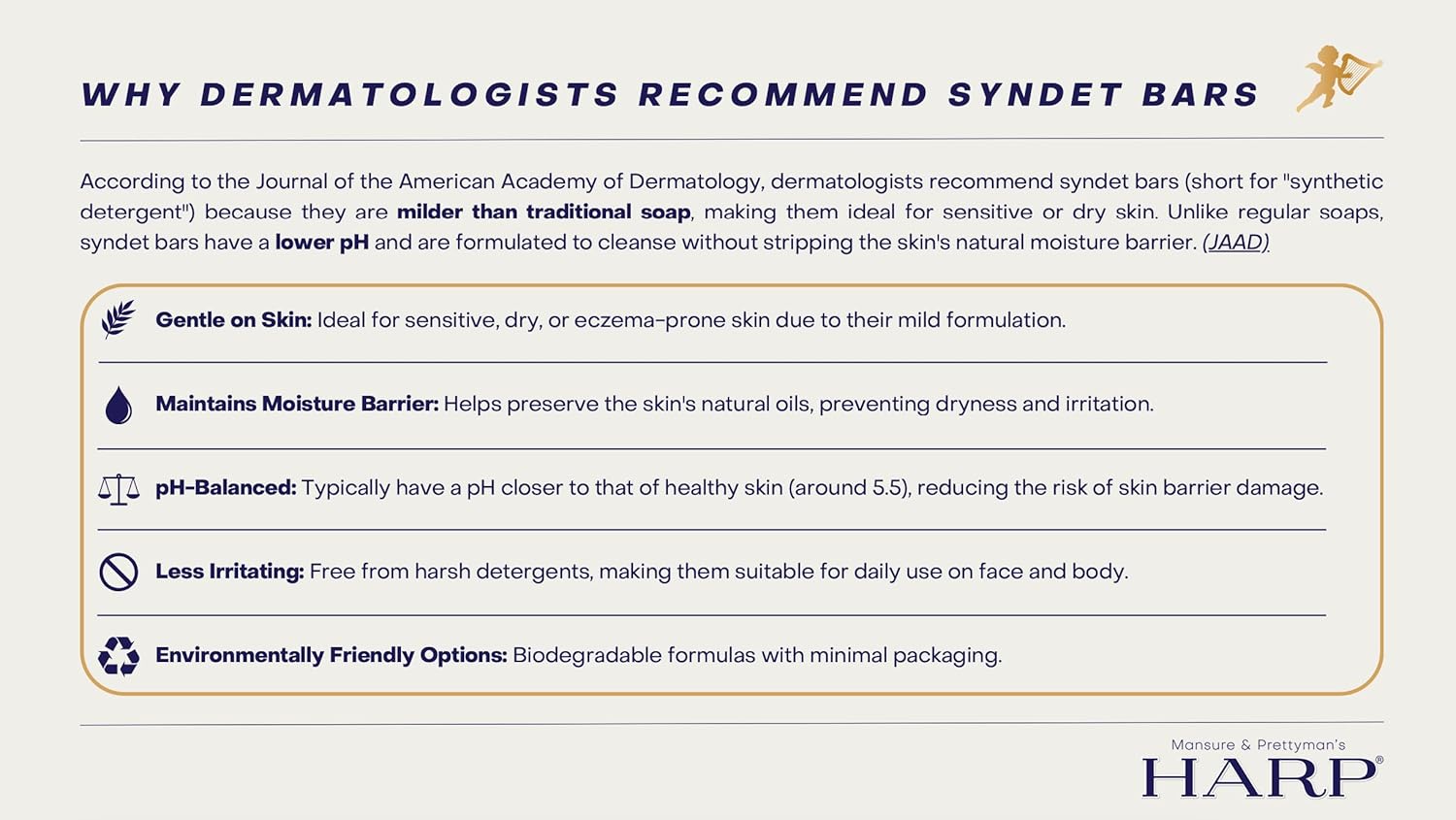 - ✅HARP has a pH-Balanced (slightly acidic 5.0-6.0) base cleanser to match and retain your skin's natural moisture barrier. This reduces the drying effect the majority of bar soaps cause. 99% of bar soaps use a process called saponification, which requires the use of Lye, which brings the pH levels up to around 10 - causing dryness. Not HARP. Our base cleanser is Sodium Cocoyl Isethionate. (zero Lye- low pH process)