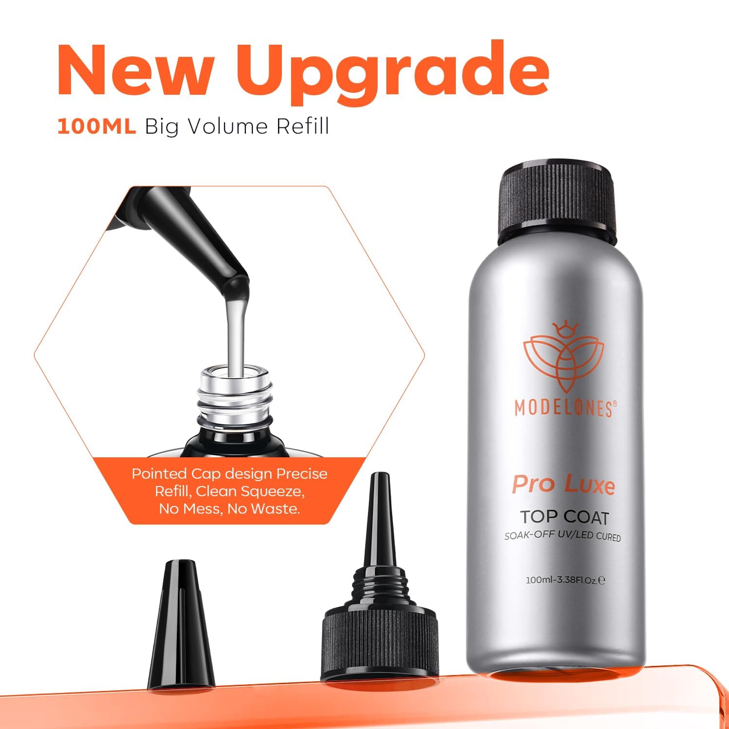 - Shiny Top Coat: You will get modelones 100ml Large Capacity no wipe gel top coat. Help to protect the nail surface, keeping the gel from peeling off, and keeping the nails in a long shine finish. Need to use U V/LED nail lamp curing.