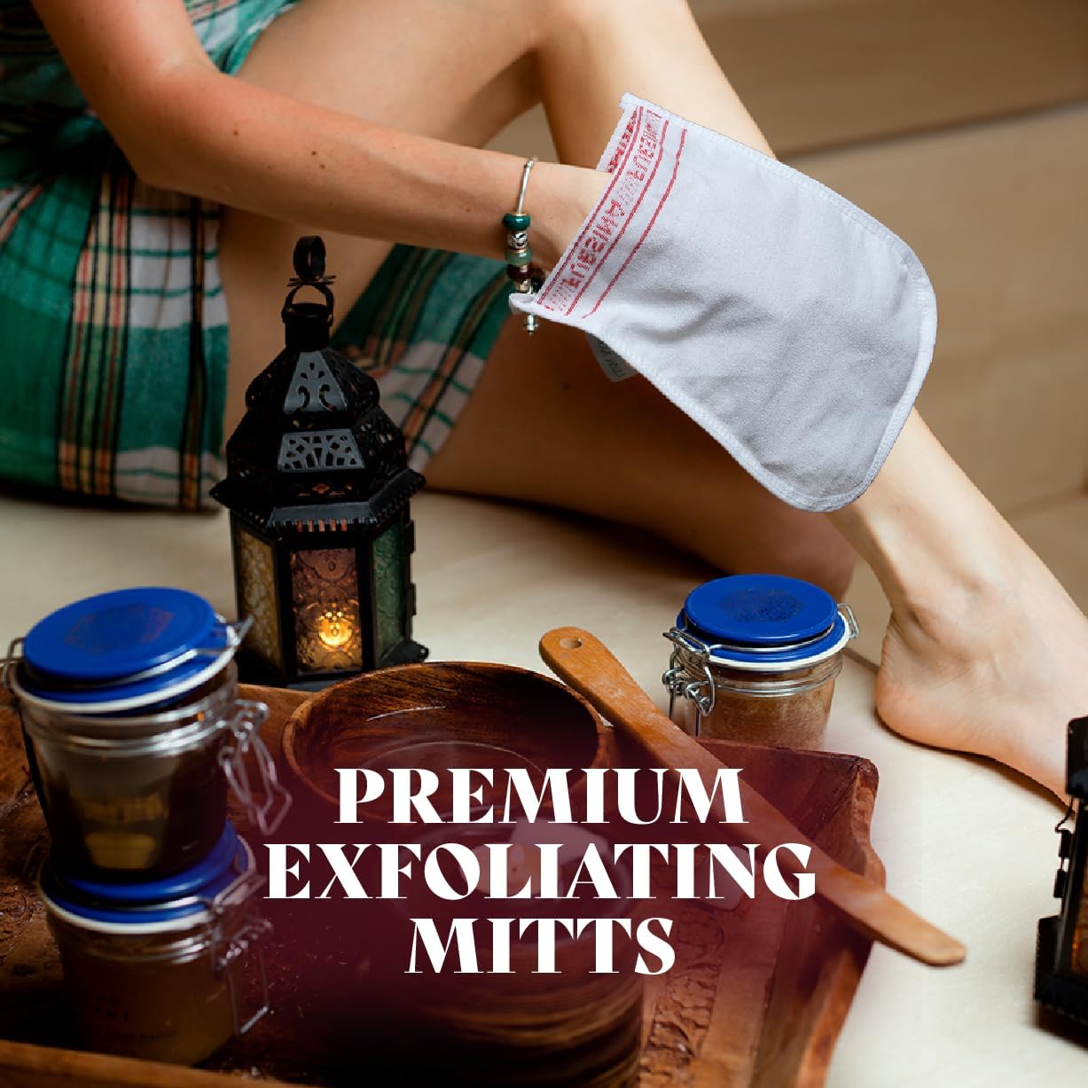 Exfoliating Glove (2 PCS) - Turkish Hammam Mitt for Bath, Exfoliating Body Scrubber Mitt, Dead & Dry Skin Remover for Body, Great for Spray Tan Removal, Smooth Skin Surface