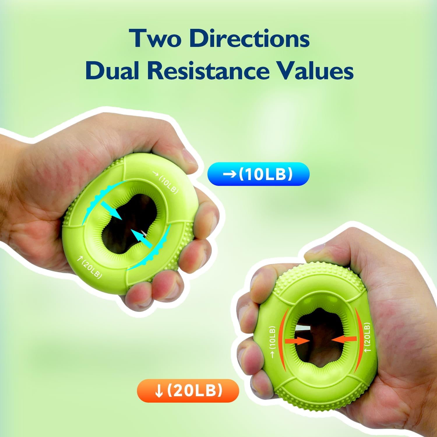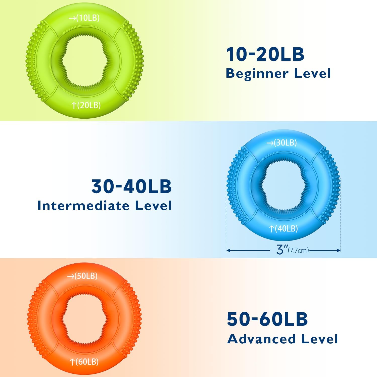 - ๐๐ผ๐ป๐ด-๐น๐ฎ๐๐๐ถ๐ป๐ด & ๐๐น๐ฒ๐ ๐ถ๐ฏ๐น๐ฒ ๐๐ฟ๐ถ๐ฝ ๐ฅ๐ถ๐ป๐ด๐: Advance your hand strength with our progressive hand gripper rings, offering adjustable resistance from a gentle 10-20LB to a tough 50-60LB. Each ring is made from premium food-grade silicone, ensuring lasting elasticity and shape retention. The non-slip textured surface provides a secure and comfortable grip.