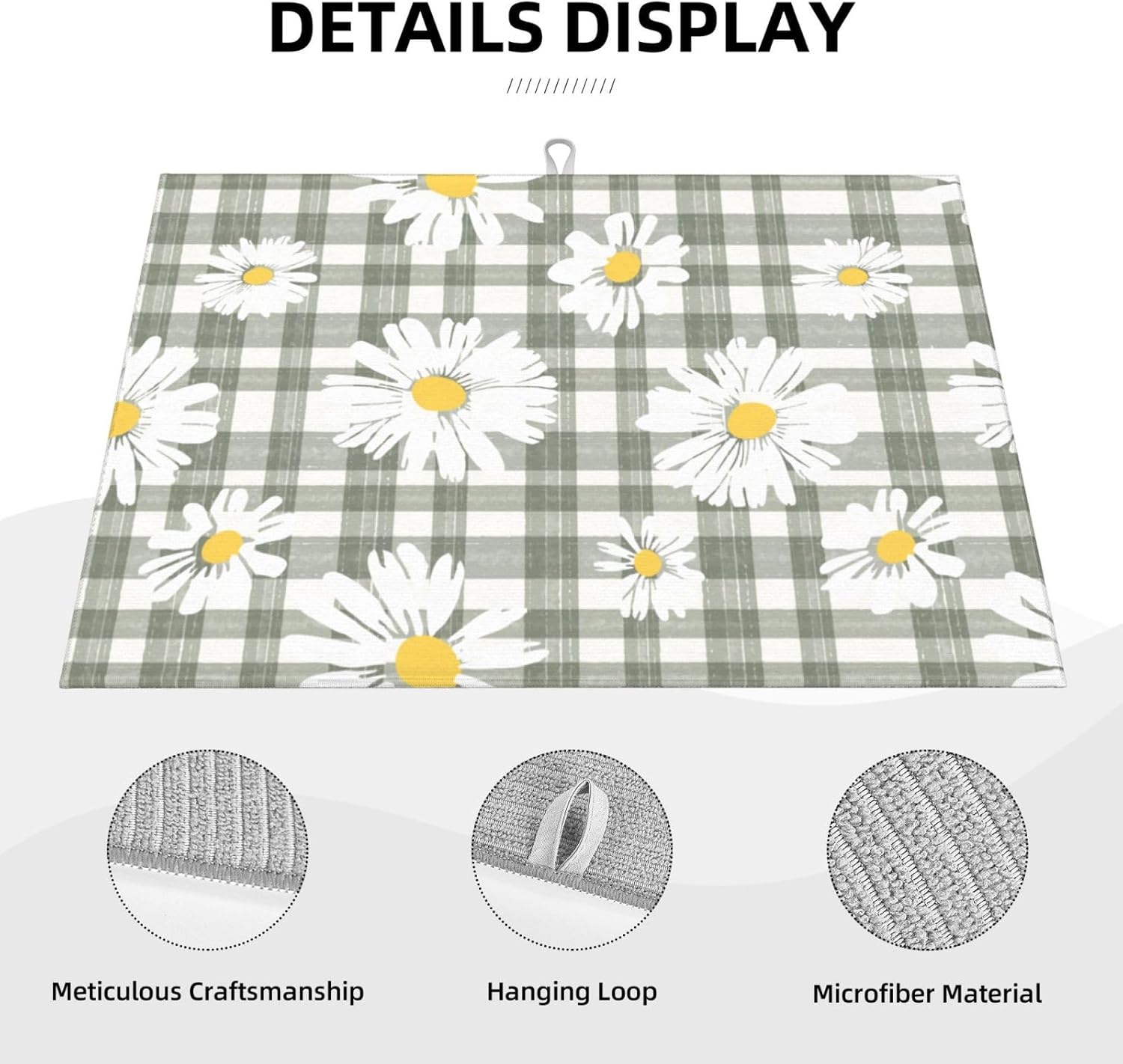 Daisy Dish Drying Mat For Kitchen Counter Absorbent Large Kitchen Fast Dry Pad Reusable Washable Protector Rack Large Mat 18 X 24