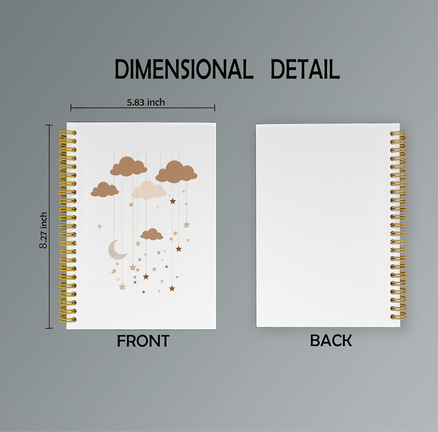 Cute Boho Moon Stars Cloud Notebook Journal, Cute Notebooks for Office, Boho Office Supplies, Notebooks for Work Note Taking, Spiral Notebook 5.5x8.3 with 164 Pages