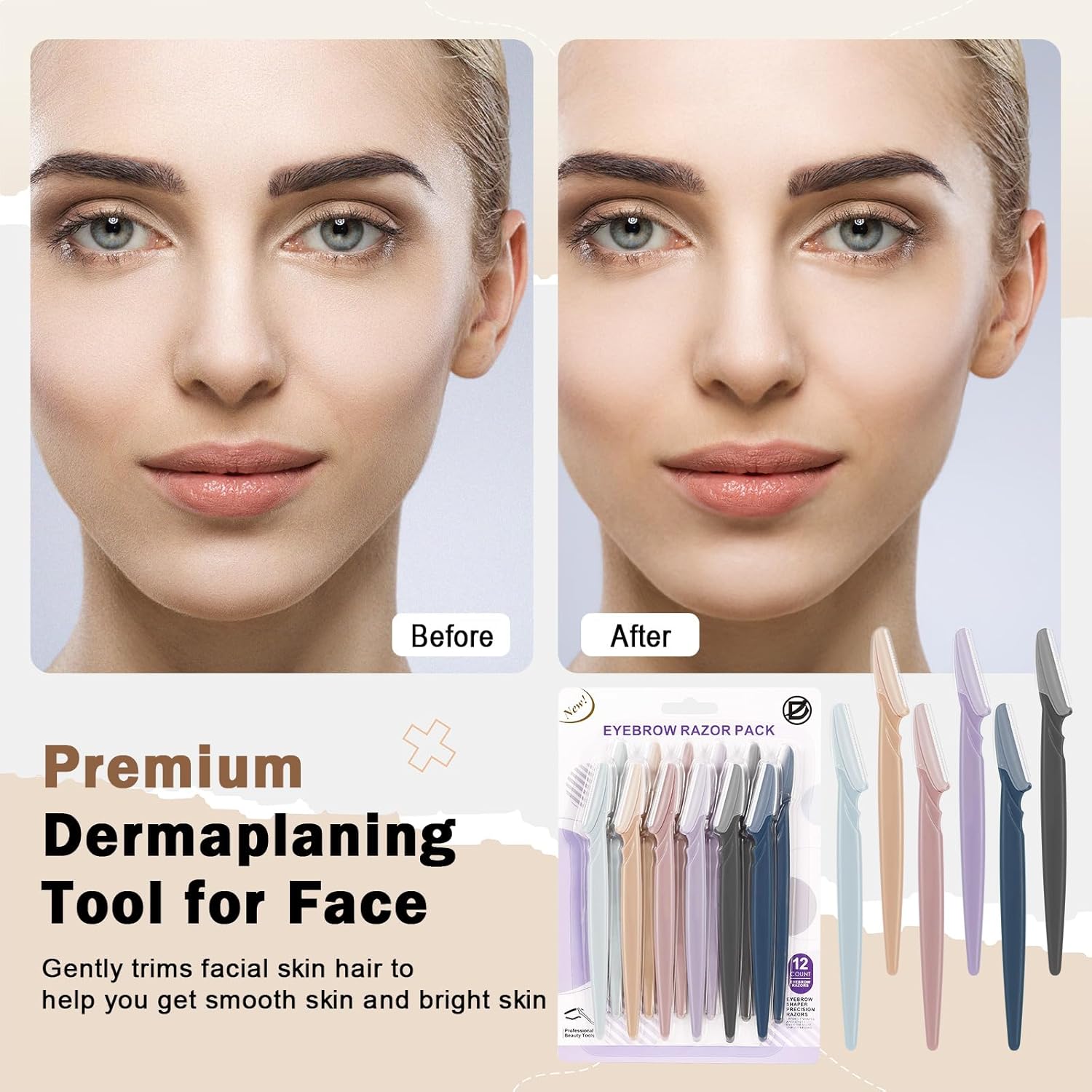 - 【Precision for Dermaplaning】The areolae surface on the cutting edge and the smaller size of these facial razors for women face are gentle enough to remove the peach fuzz and provide a precise dermaplaning experience. These face razors for women are also great for eyebrow shaping and hair removal for your body, providing a versatile solution for all your hair removal needs.