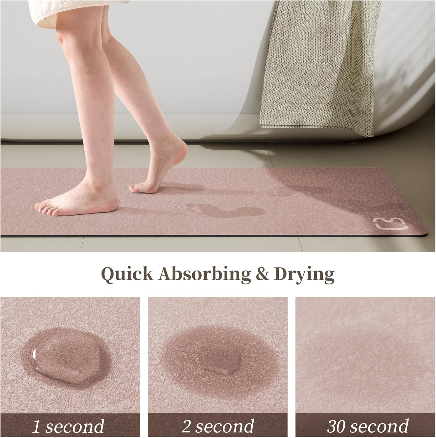 - 【Quick Absorbing & Fast Drying】 The stone bath mat for bathroom is a flexible stone bath mat made of diatom mud material, which is easier to dry than other normal plush bath mats. This water absorbing bath mat is designed to absorb water from wet feet immediately, watermarks will disappear within few minutes. Enjoy a dry and comfortable experience after your shower.
