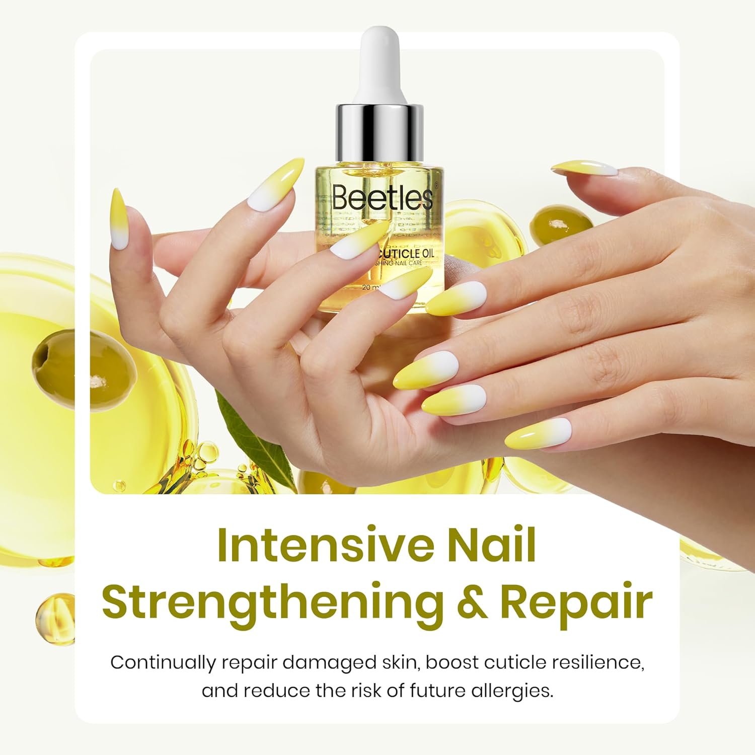 Beetles Cuticle Oil: Olive Oil for Nails Repair & Cuticle Oil | Allergy Relief for Gel Polish Users | Fast Soothing, Deep Nourishment