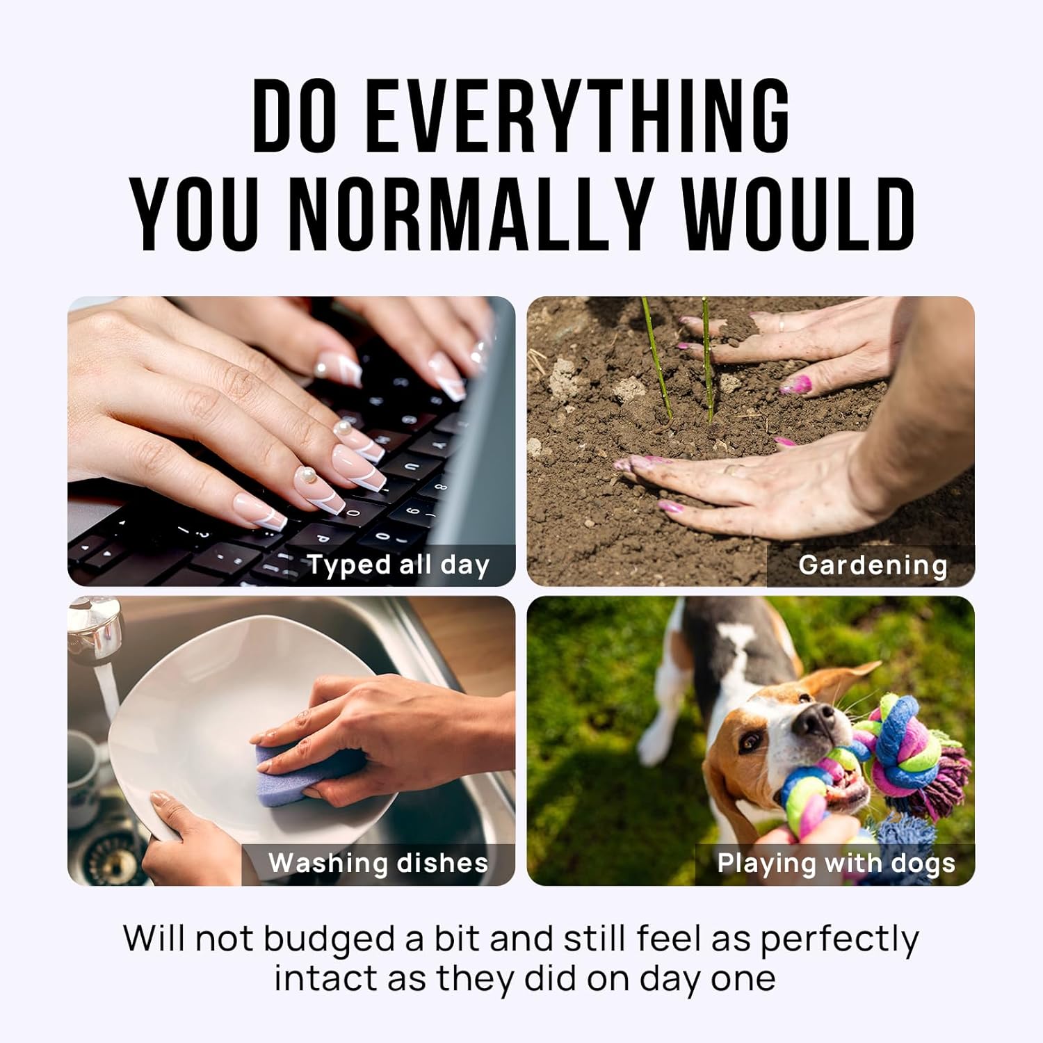 - Do Everything You Normally Would: All BTArtbox short fake nails offer feature protective building gel finish so that you are able to do everything you normally would, such as typing, gardening, houseworking or playing with your pet. They will not budged a bit and still feel as perfectly intact as they did on day one