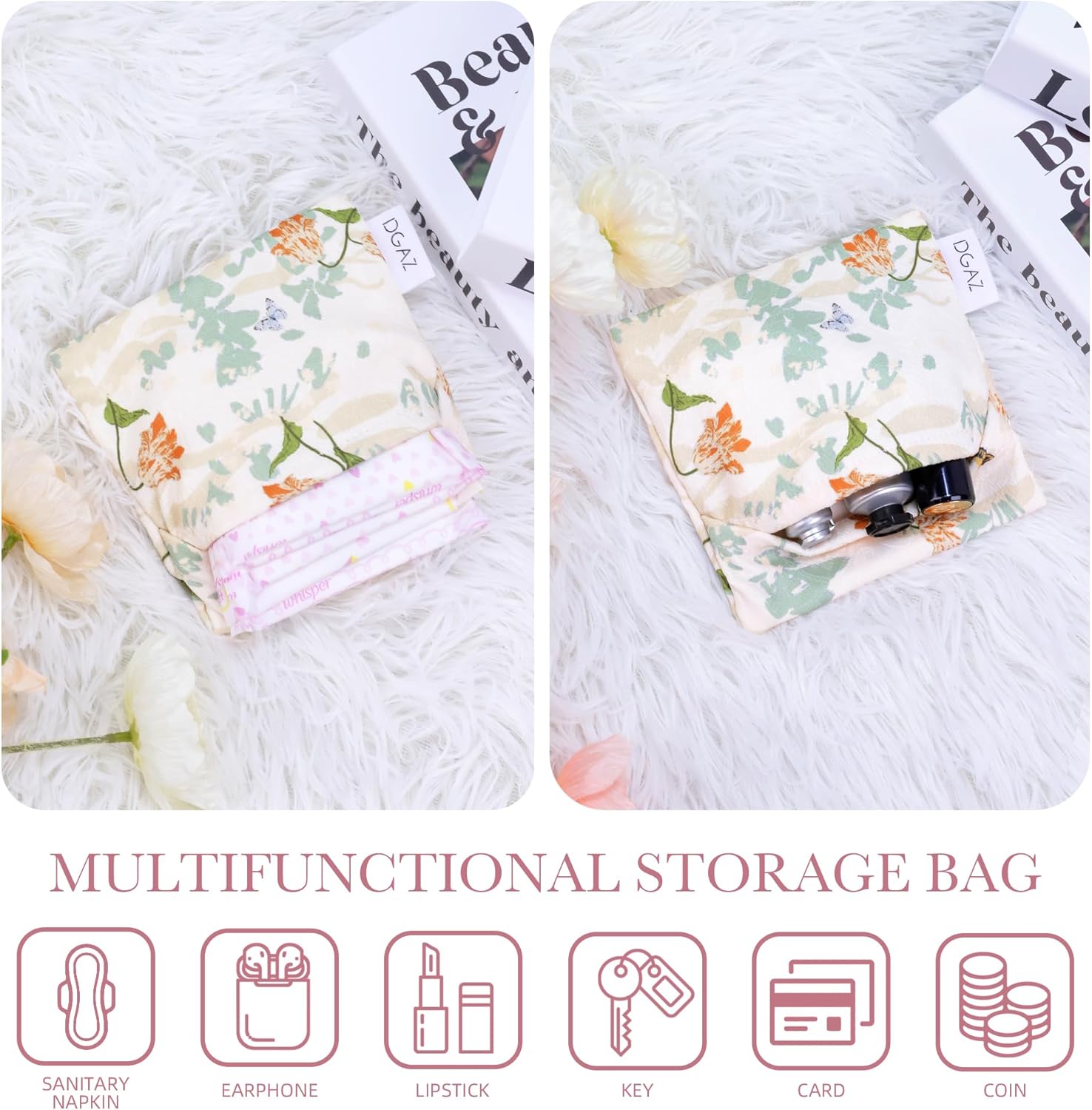 - 💕 【UNIQUE BEAUTY】 - Our pad storage bag multiple patterns to choose from, each pattern is unique and beautiful, and made of soft skin-friendly material, you can also get happy feeling during your period. Will be a great gift for your family and friends.