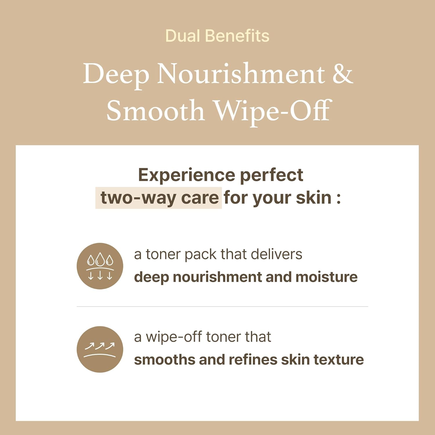 - ๐ 2 Way Care Experience perfect two-way care for your skin. These pads function as a toner pack that delivers deep nourishment and moisture, and as a wipe-off toner that smooths and refines skin texture, ensuring a smooth and hydrated finish.