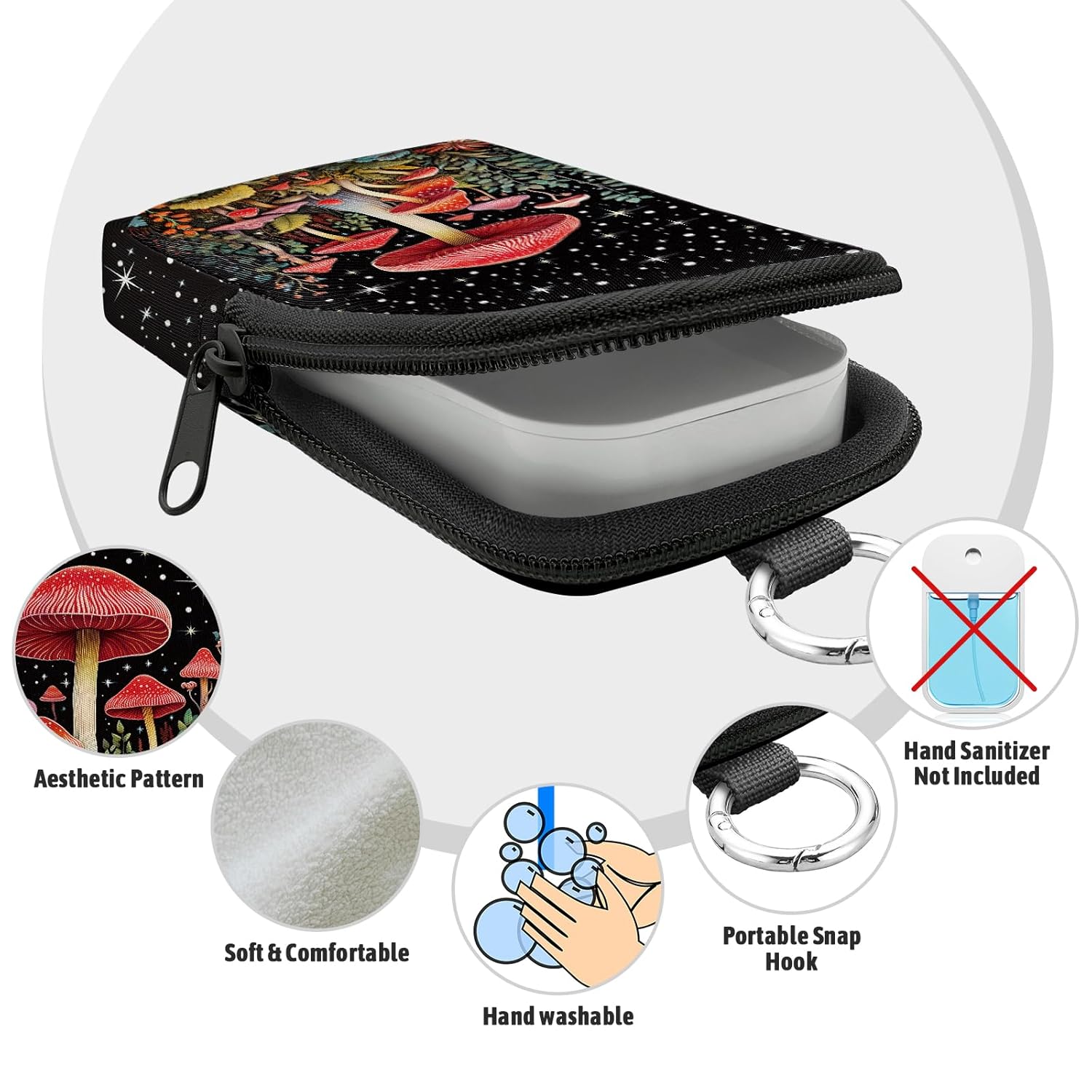 Cute Mushroom Hand Sanitizer Spray Case, Hand Sanitizer Holder Zippered Pouch, Fashion Accessory with Snap Hook for Glow Mist and Power Mist 1FL OZ