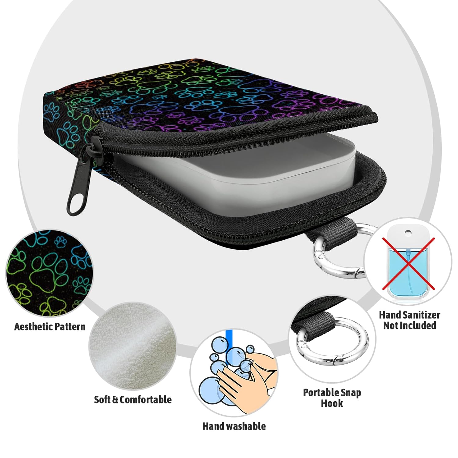 - Convenient Use: Smooth zipper and snap hook allow easy attachment to backpacks, belts or keychains. Keep your hand sanitizer accessible at all times, ensuring clean and hygienic hands. Compact size fits effortlessly in pockets or bags