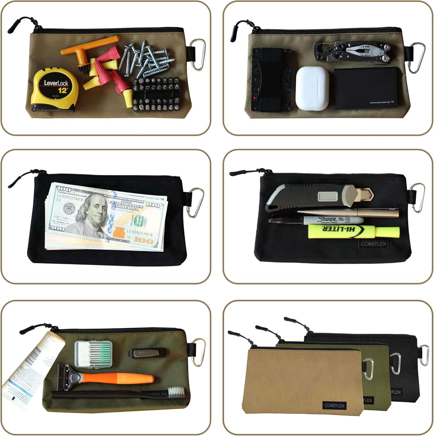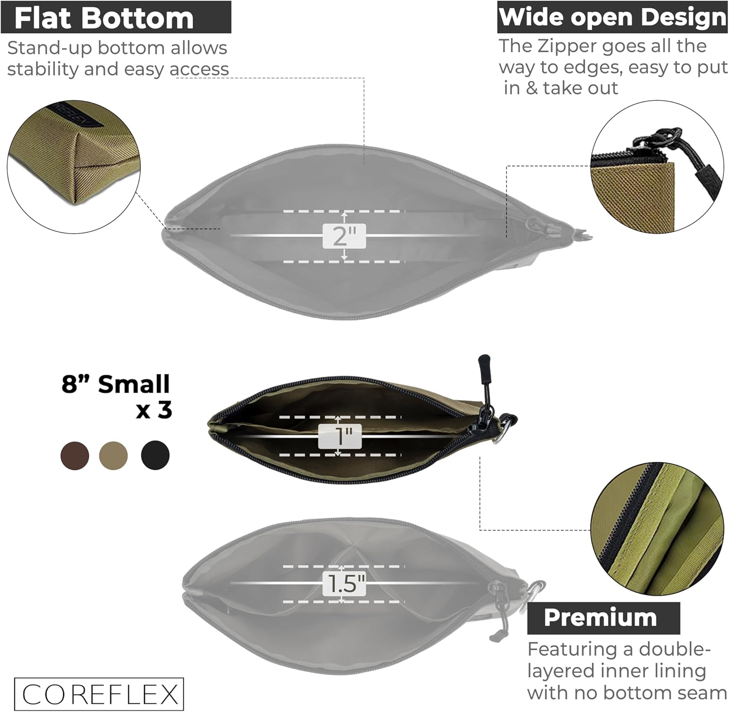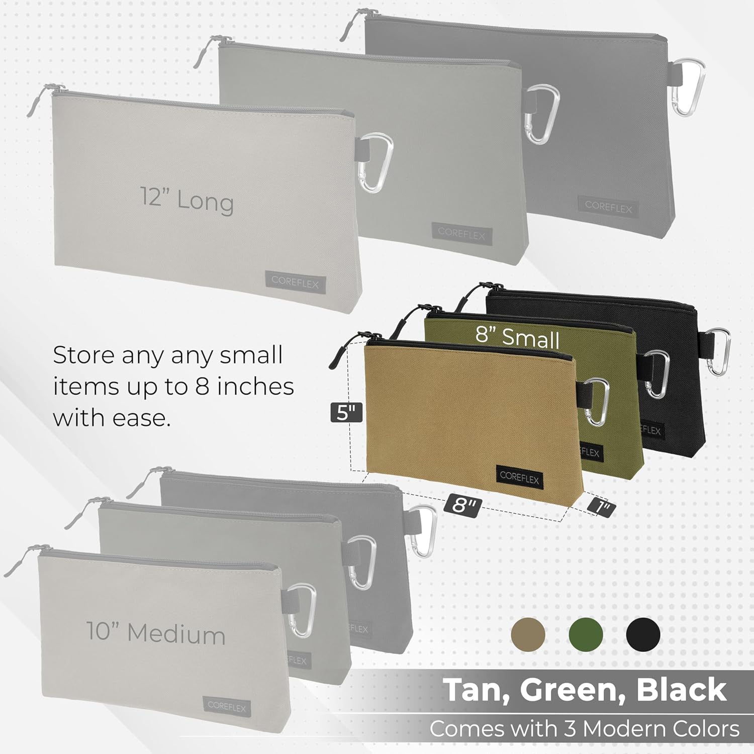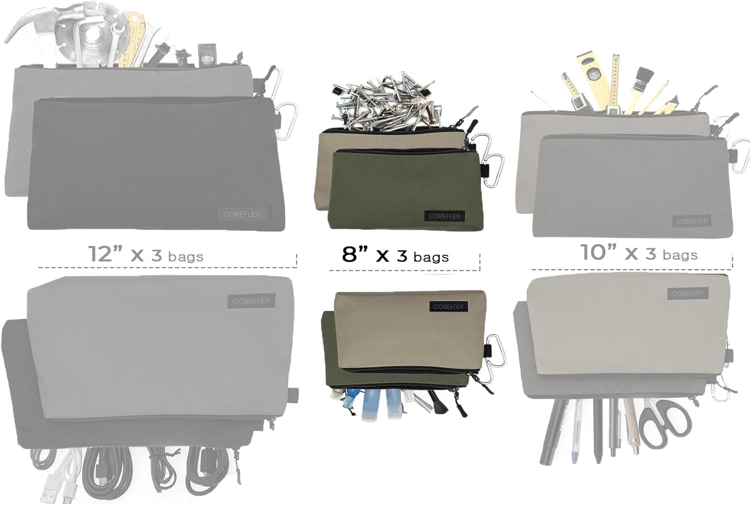COREFLEX Premium Tool Pouch Zipper Bag, Small Tool Bag, Multipurpose Storage pouch, Heavy duty Flat Bottom Tool bag with YKK Zipper (3 pack Small 8inch)