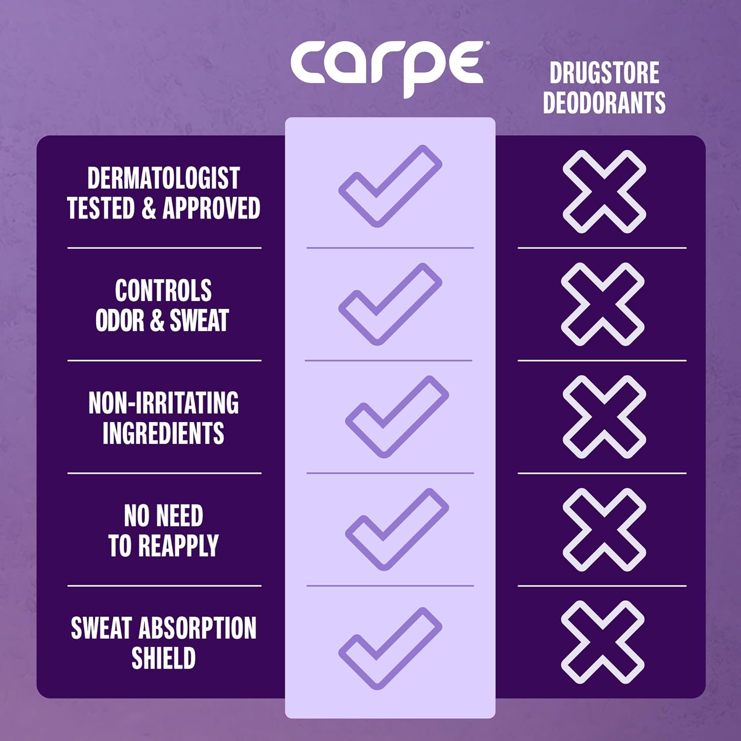 - DEVELOPED WITH DERMATOLOGISTS: Carpe’s scientifically developed sweat control formula has been independently tested for safety and proven to be a leading over-the-counter sweat solution. Our deodorant for extreme sweating is gentle on skin & provides the protection you can count on!