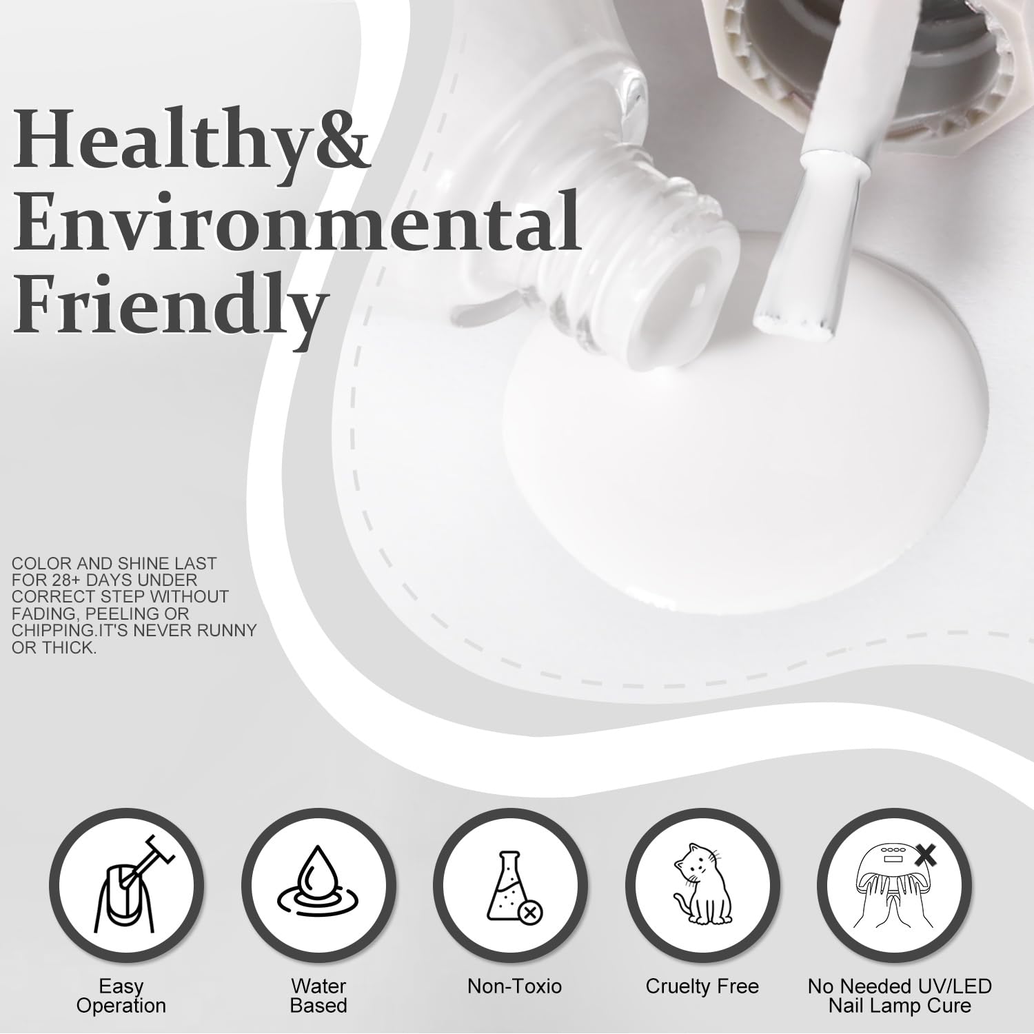 - NOTE: This nail polish is resistant to chipping and peeling, but for a longer-lasting shine, we recommend applying a top coat to keep the gloss for over 15 days!