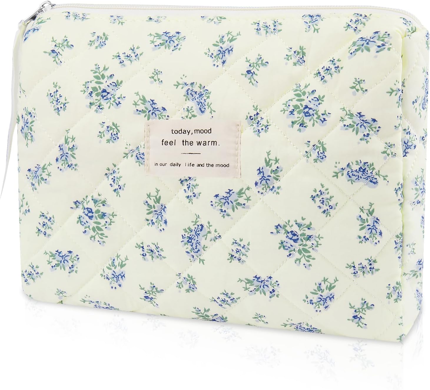 Floral Makeup Bag, Small Cosmetic Bag for Women Girls, Cute Cotton Makeup Bag, Quilted Makeup Bags, Flower Travel Toiletry Organizer Bag(LSHH)