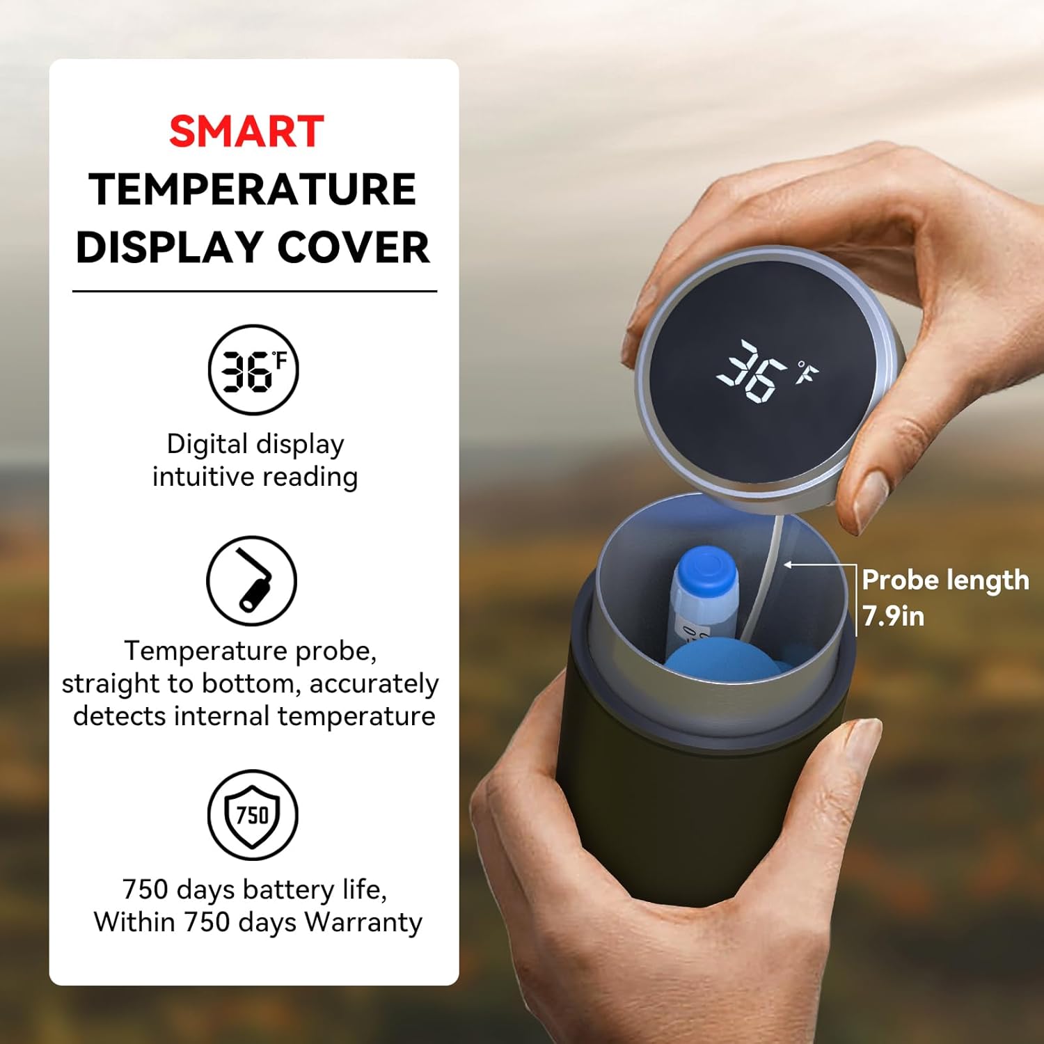 - How long can medication cooler keep cold : 1)The inner and outer layers of the cooler are made of 18/8 (304) food-grade stainless steel, and the middle is double-layered vacuum. 2)Put the blue gel bottle in the freezer for 6-8H before use. After taking it out๏ผthe gel bottle will slowly release the coldness, Put it in the vacuum cooler and keep cold for up to 48H in an outdoor environment of 86โ(30โ). 3)If use a white ice water bottle, it can be extended by 12H, total keep cold for up to 60H