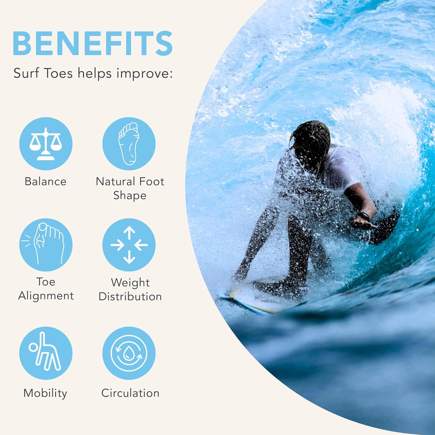 - Improves Athletic Performance: Enhance your surfing, yoga, or climbing practice by promoting proper alignment and stability. Surf Toes works to restore foundational stability, which is essential for better balance and posture, whether youโre at the gym, on the beach, or simply walking.