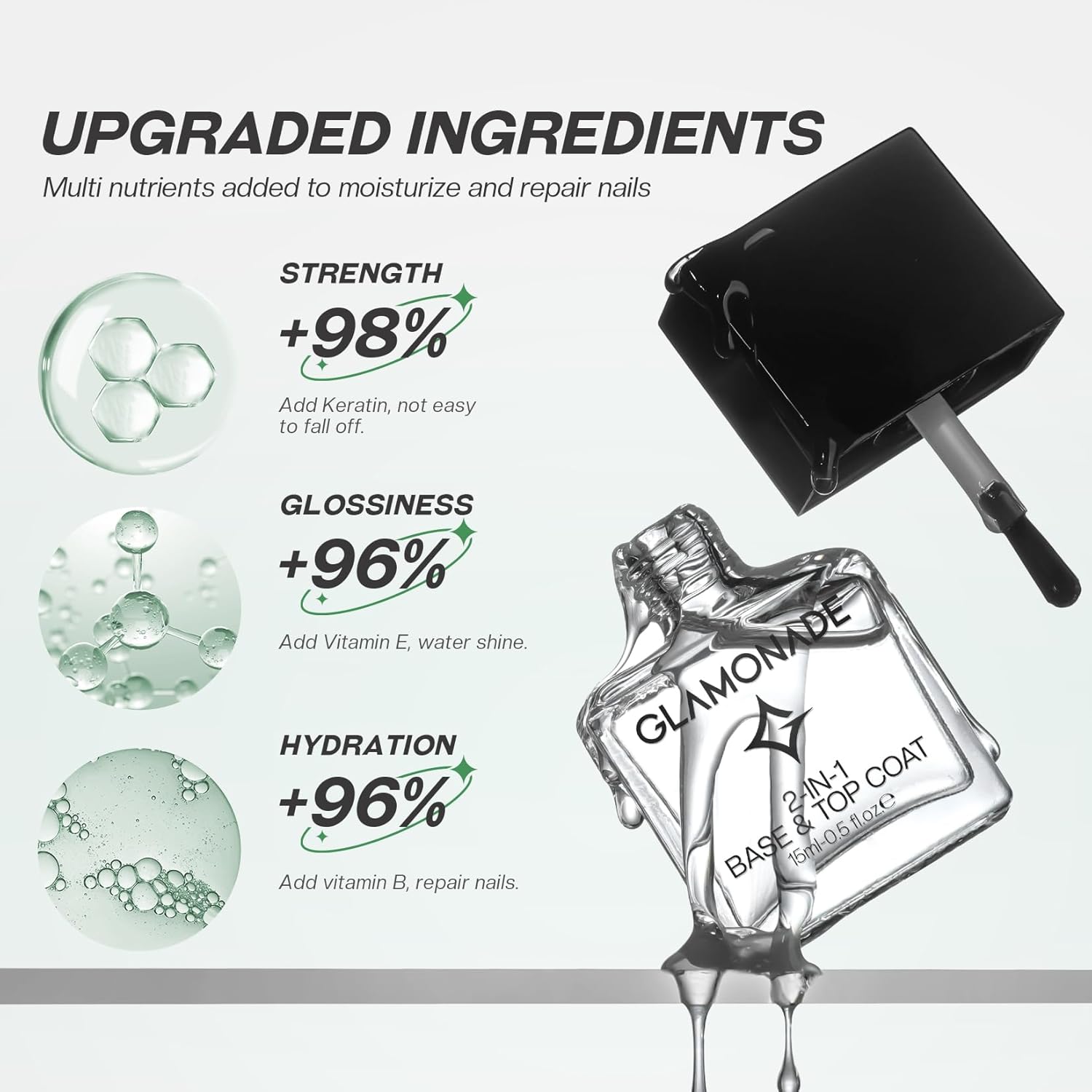 - Long-lasting: Clear Base ๏ผ Top Coat nail polish can make your color nail polish nails shinier and scratch free problem,give your for you along lasting glossy effect.You can also use it on your natural nails to make plain nails shinier and stronger.