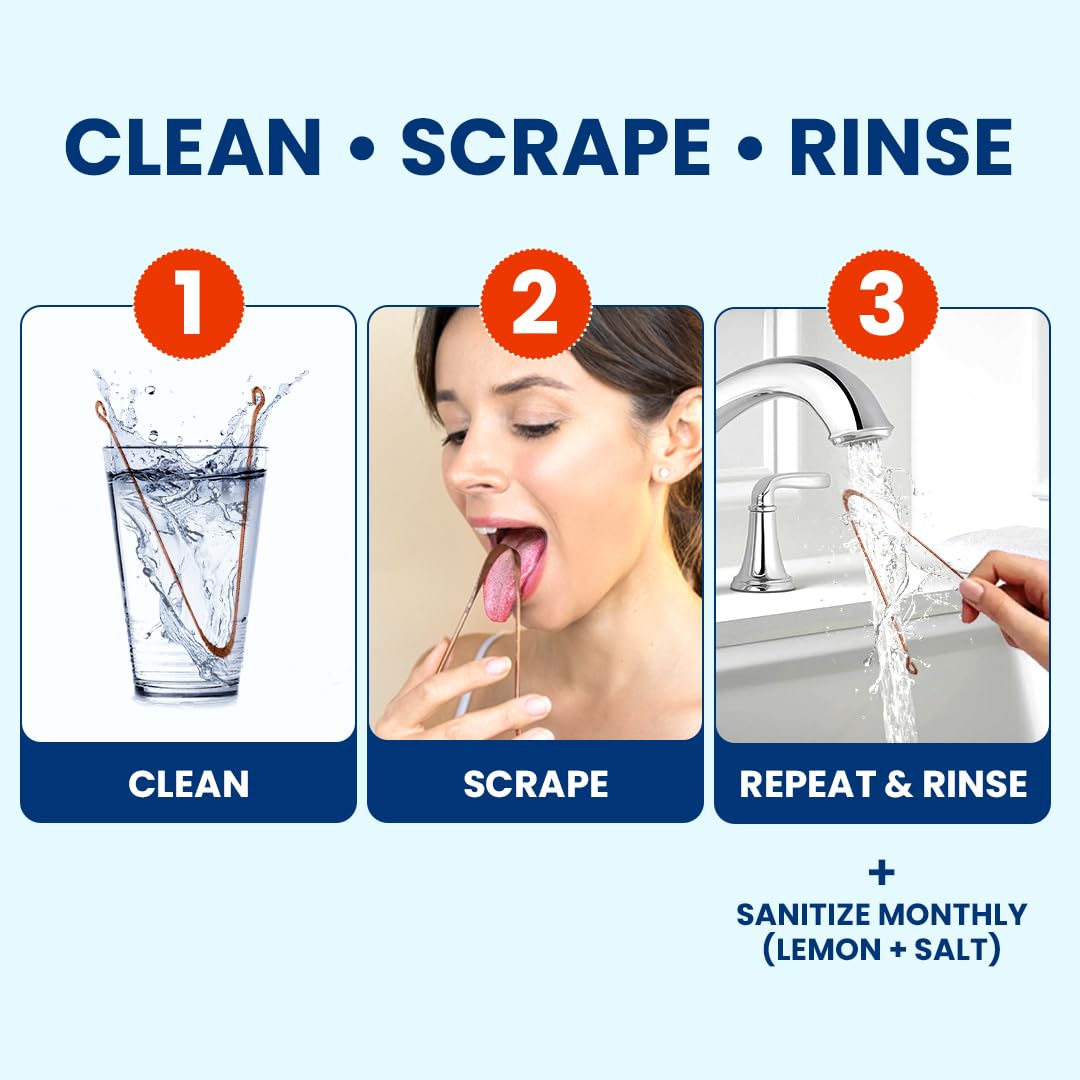 - ECO-FRIENDLY AND REUSABLE TOOL: Crafted to minimize waste, this reusable tongue scraper is easy to maintain and environmentally conscious. Clean with lemon juice, salt, or mild soap for lasting copper tongue scraper shine. Superior alternative to plastic tongue scraper or disposable tongue scraper options. This tongue cleaner reduces waste while providing effective metal tongue scraper performance, making it ideal for eco-conscious users seeking sustainable oral hygiene solutions.
