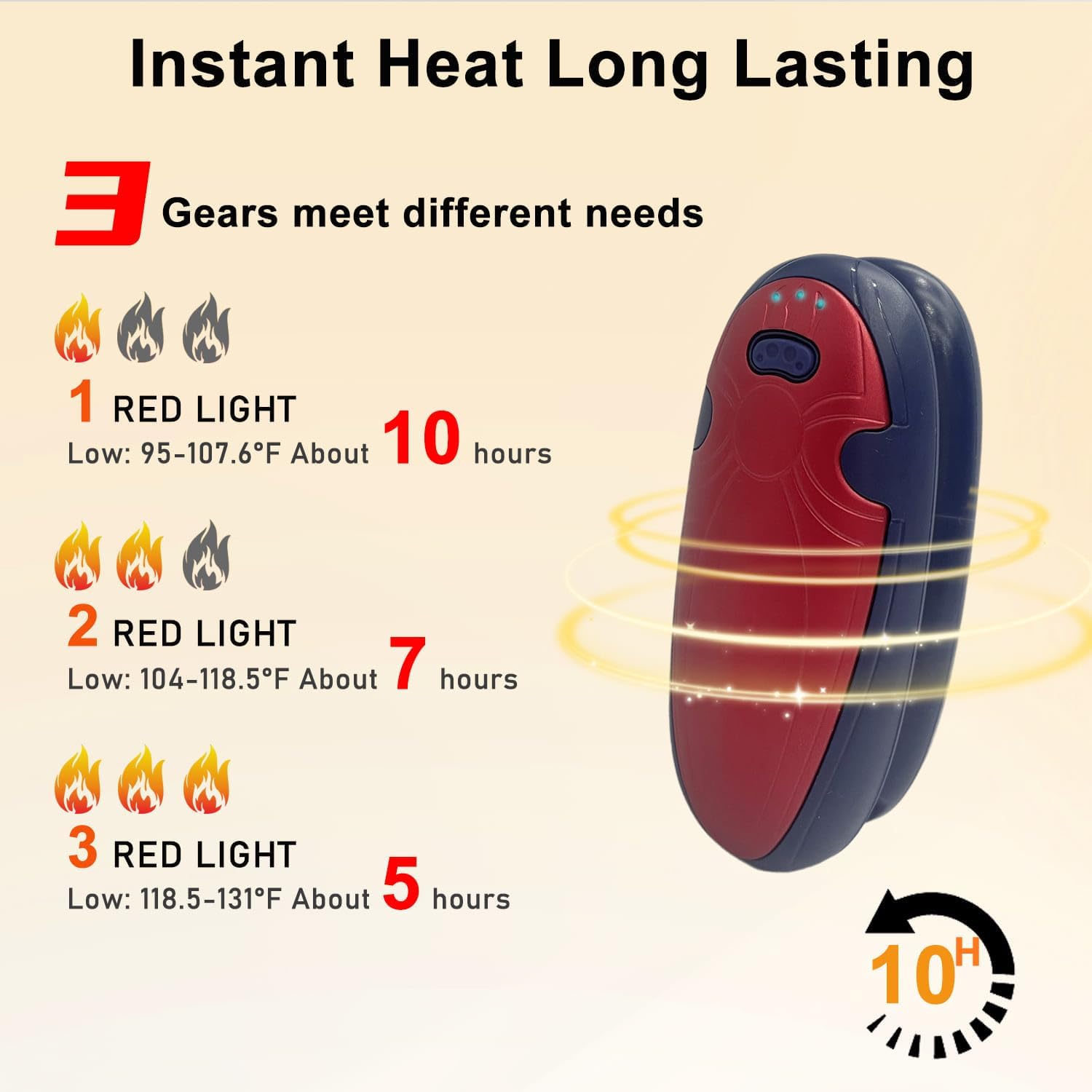 - EASY ADJUSTMENT OF THREE GEARS- 2 seconds fast heating with 3 heating settings for your choice: low temperature 35-42°C (95-107°F), medium temperature 42-48°C (107-118°F), high temperature 48-55°C (118-131°F), to achieve stable, adjustable, precise and comfortable heating effect. Provide you with instant warmth.