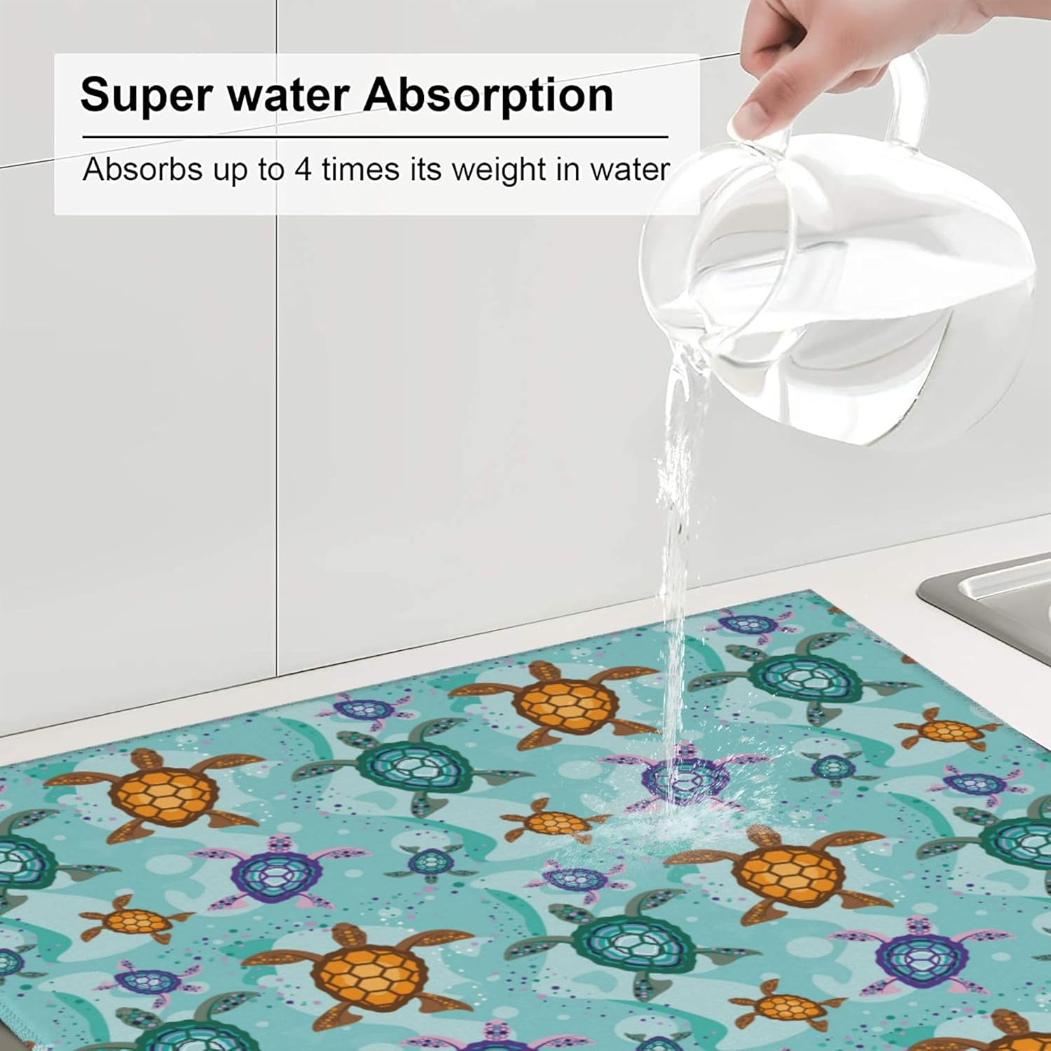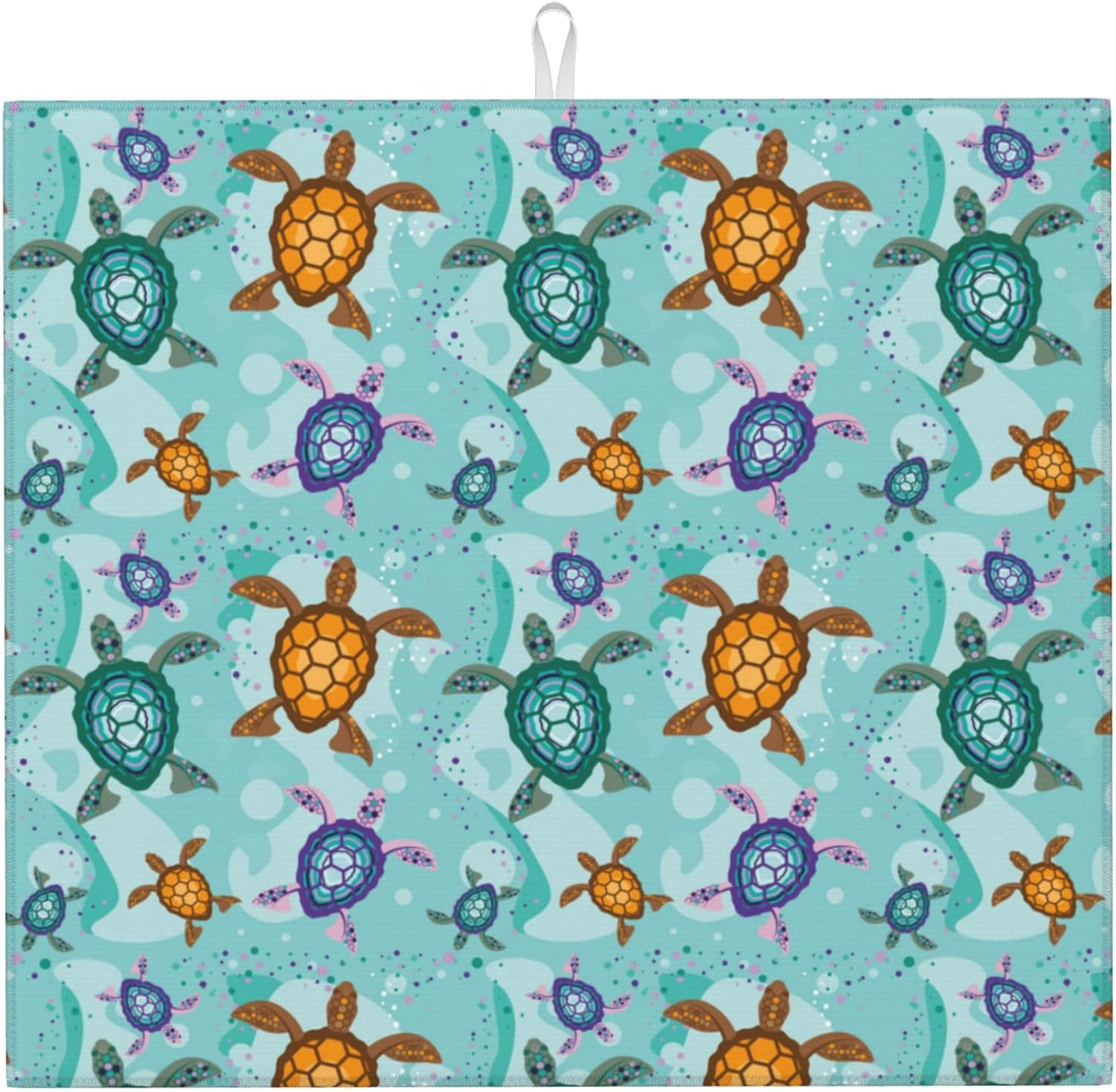 Cute Sea Turtle Beach Kitchen Drying Mat Ocean Themed Decorative Microfiber Dish Drainer Mat for Kitchen Counter Absorbent Reusable Washable 16x18 Inch