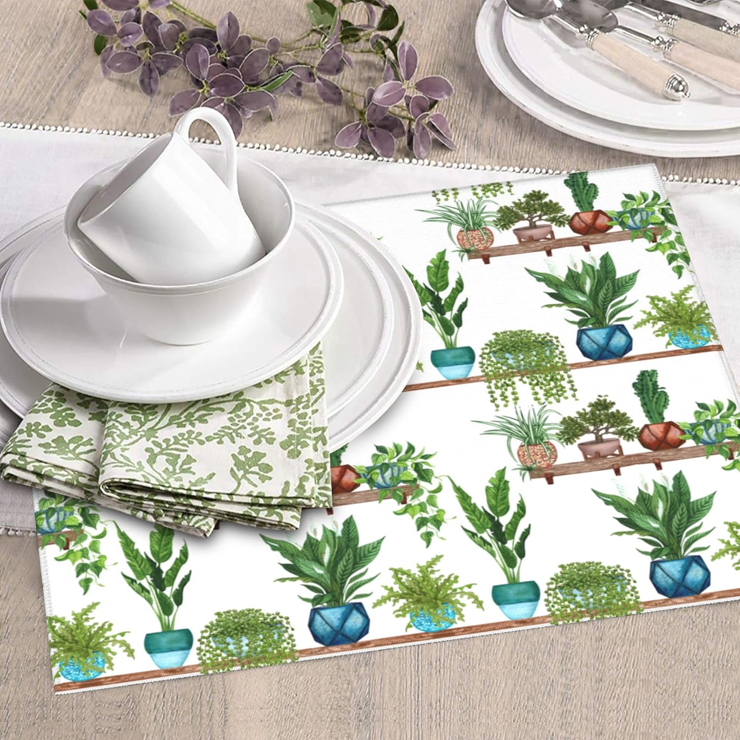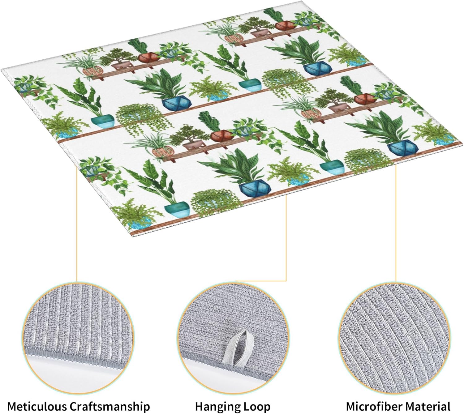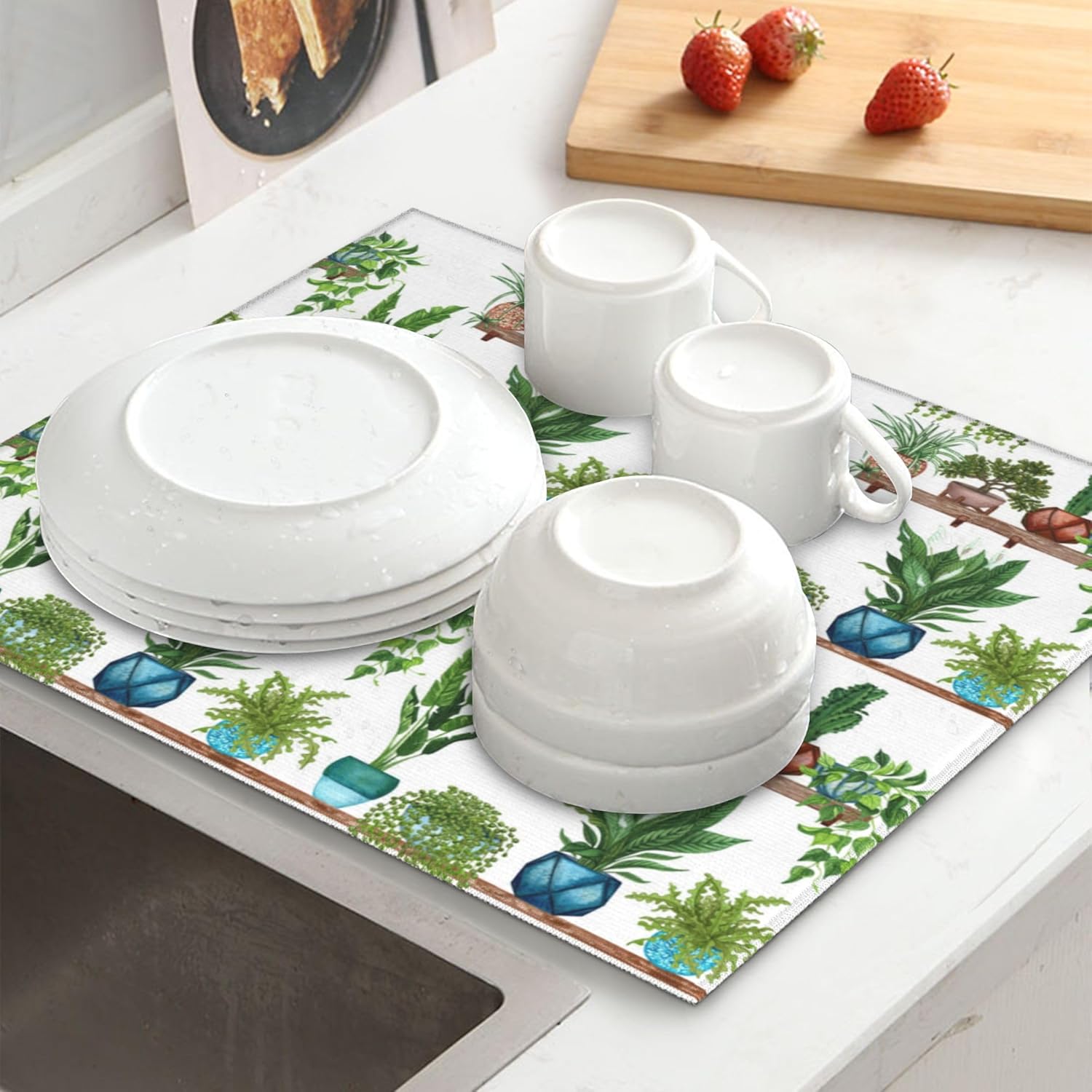 Green Plant Dish Drying Mat for Kitchen Counter Cute Dish Drainer Rack Mats 16"x18" Absorbent Reversible Drying Pad