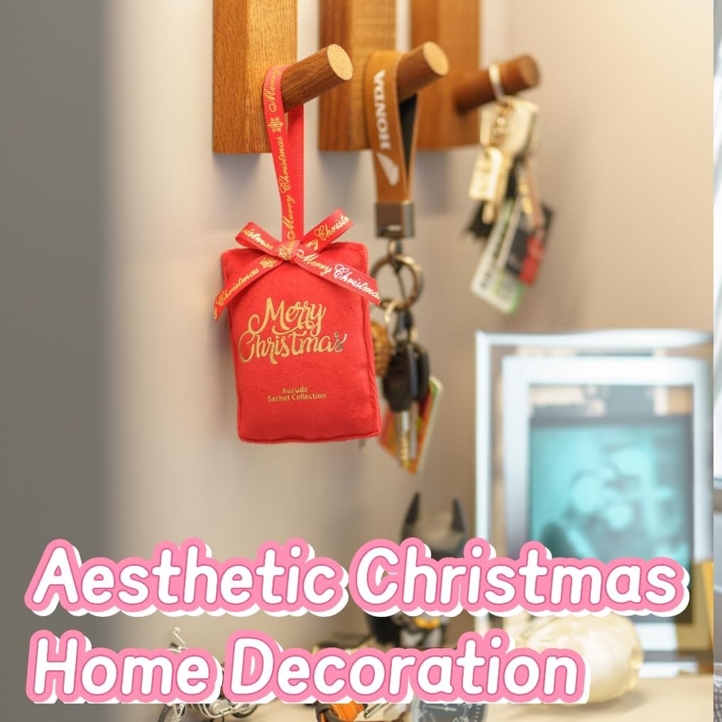 AUCUDA 4pcs Merry Christmas Sachet Bags Apple Cinnamon Scented for Drawers and Closets, Potpourri Packets for Women Outfit, Winter Red Fragrance Pillow for Bedroom Indoor, Fresheners for Wedding