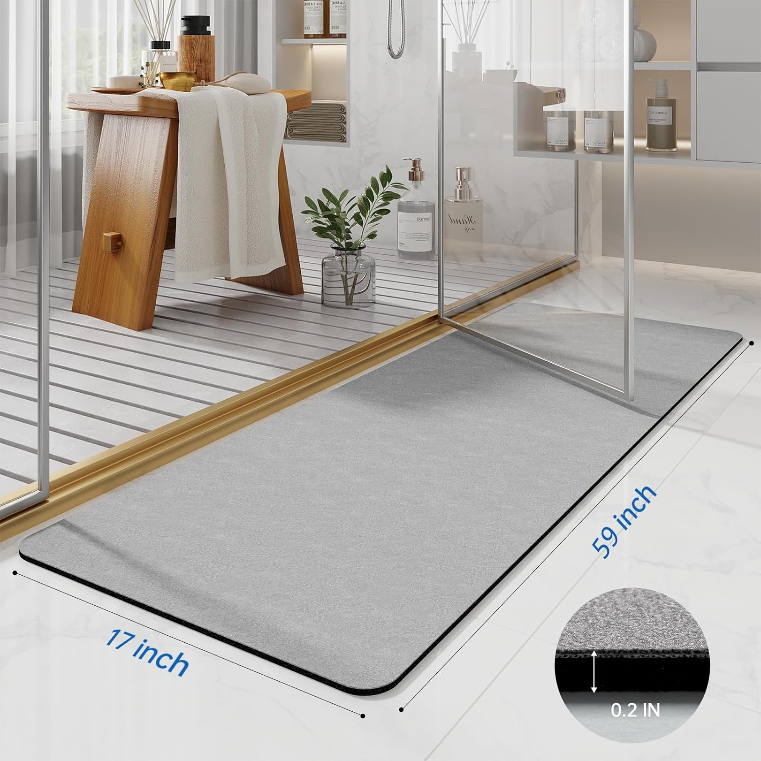 Grey Long Bathroom Mat Rugs 59x17 Diatomaceous Earth Bath Mat Large Quick Dry Bath Mat Non Slip Rubber Backed Super Absorbent Shower Mat, Thin Bath Runner Rugs Floor Mat Fit Under Door,Shower,Sink