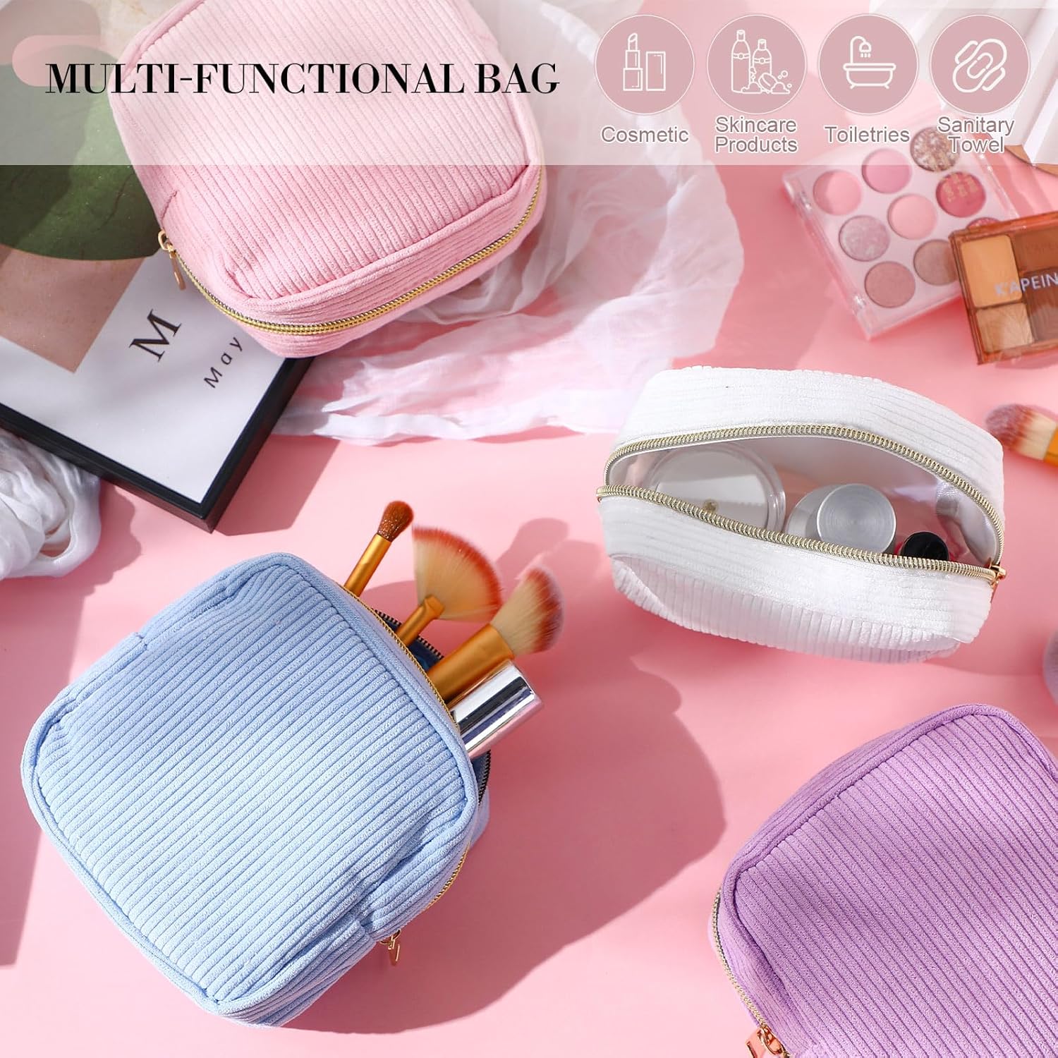 4 Pcs Sanitary Napkin Storage Bag Corduroy Period Bag for School Teen Mini Makeup Preppy Cosmetic Wallet Set for Women Portable First Period Pouch with Zipper Cute Pad Pouch