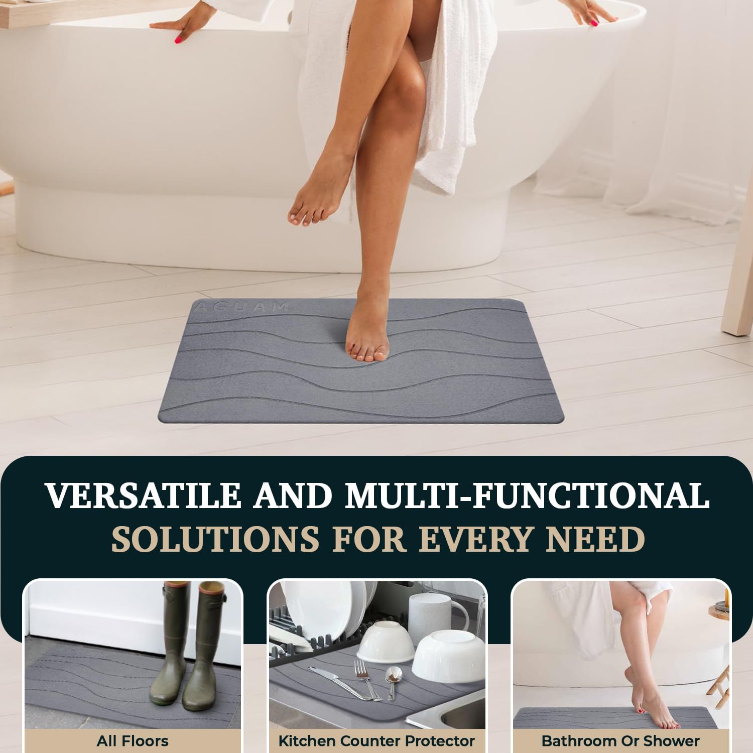 - Fast Drying and Ultra-Absorbent: AGUAMโs bathroom mats can be used as tub mats non slip and are one of the quick dry bath mat for bathroom essentials that has natural properties which ensure excellent absorption of excess water. Also from this non slip bath mat, the water will evaporate in seconds, leaving your shower stone bath mats for bathroom clean and moisture-free!