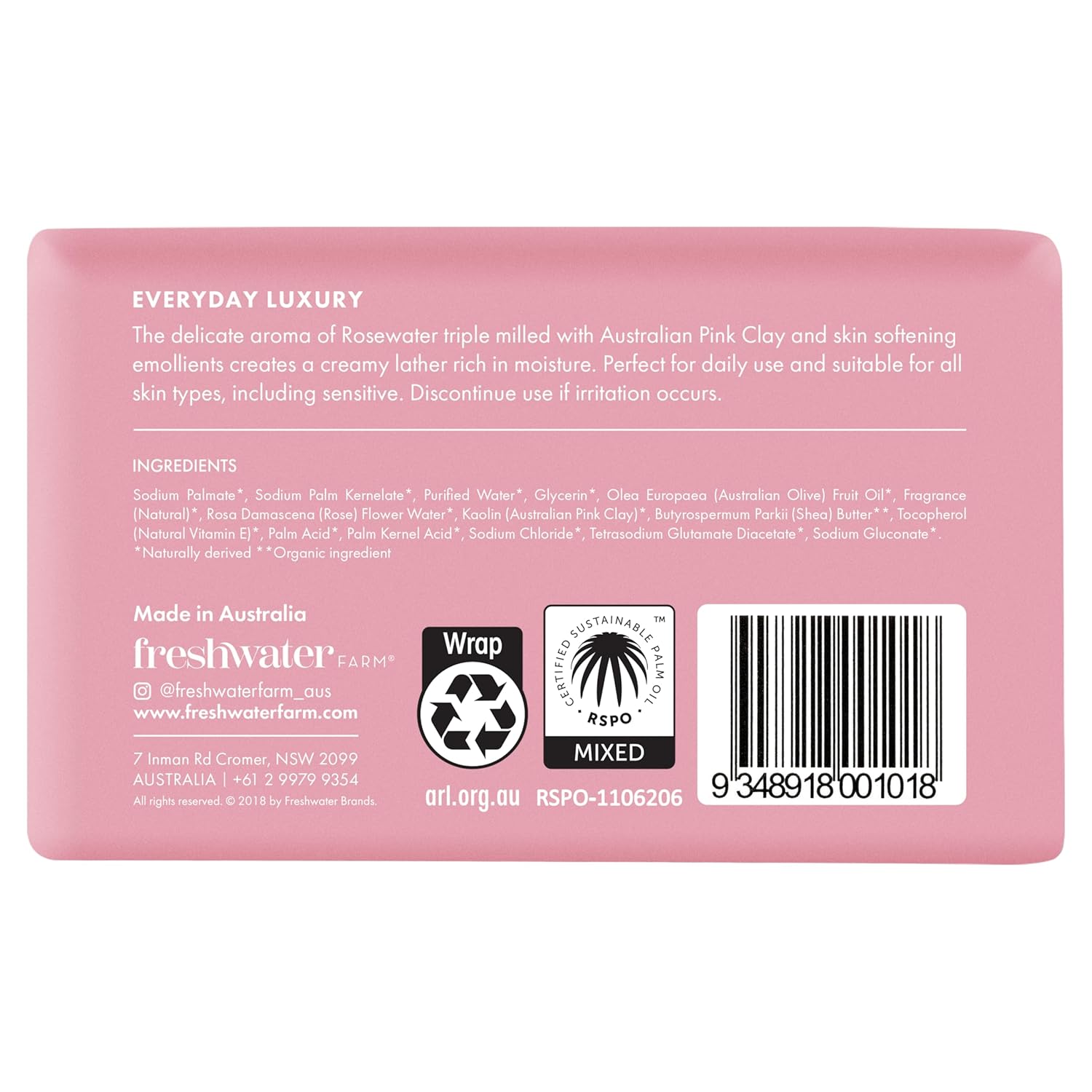 Castile Natural Bar Soap | Rosewater + Pink Clay | Australian Made + Family Owned | Triple-Milled with Australian Pink Clay | Recyclable Paper Wrap | 200g x 8pk