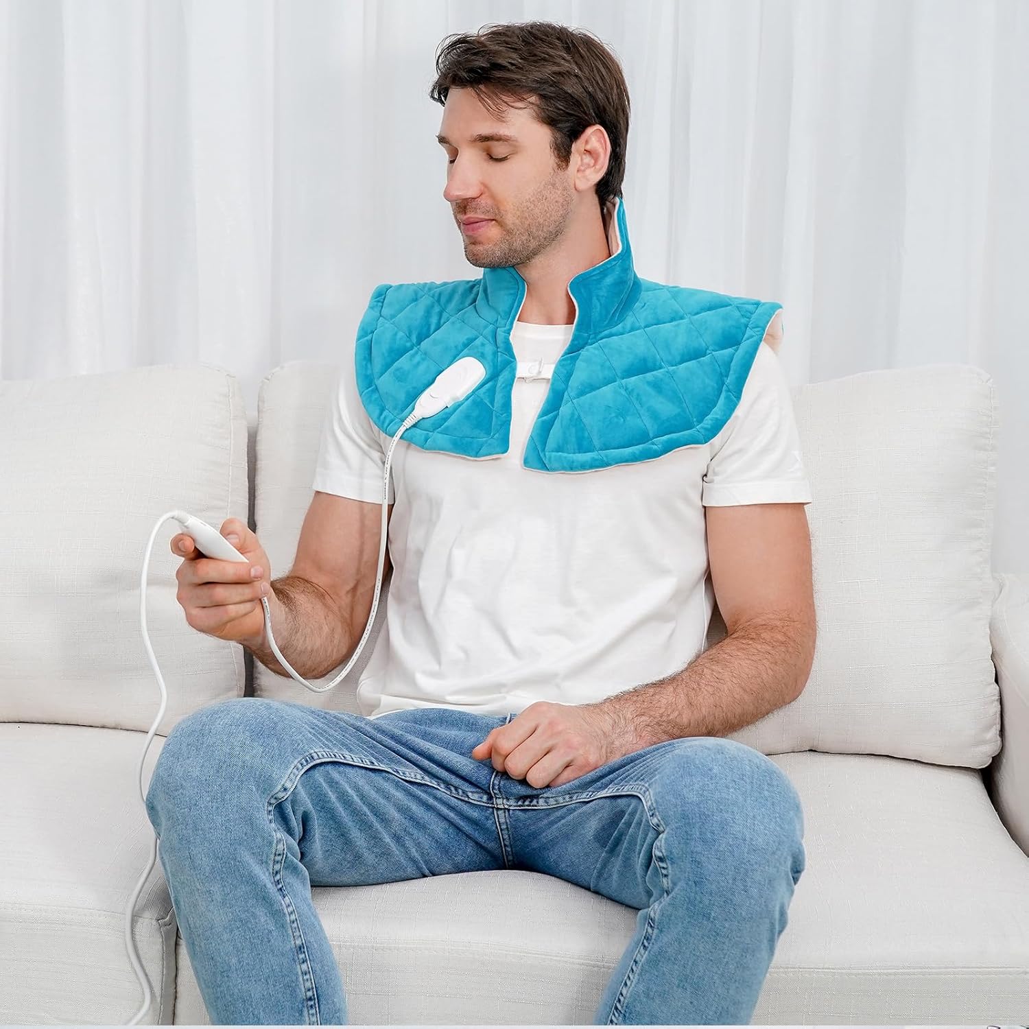 Electric Heating Pad for Neck and Shoulders, Far Infrared Heated Pad for Pain Back Relief, Weighted Electric Heating Pads with Auto-Off, Gifts for Women Men Mom Dad(L, Blue)