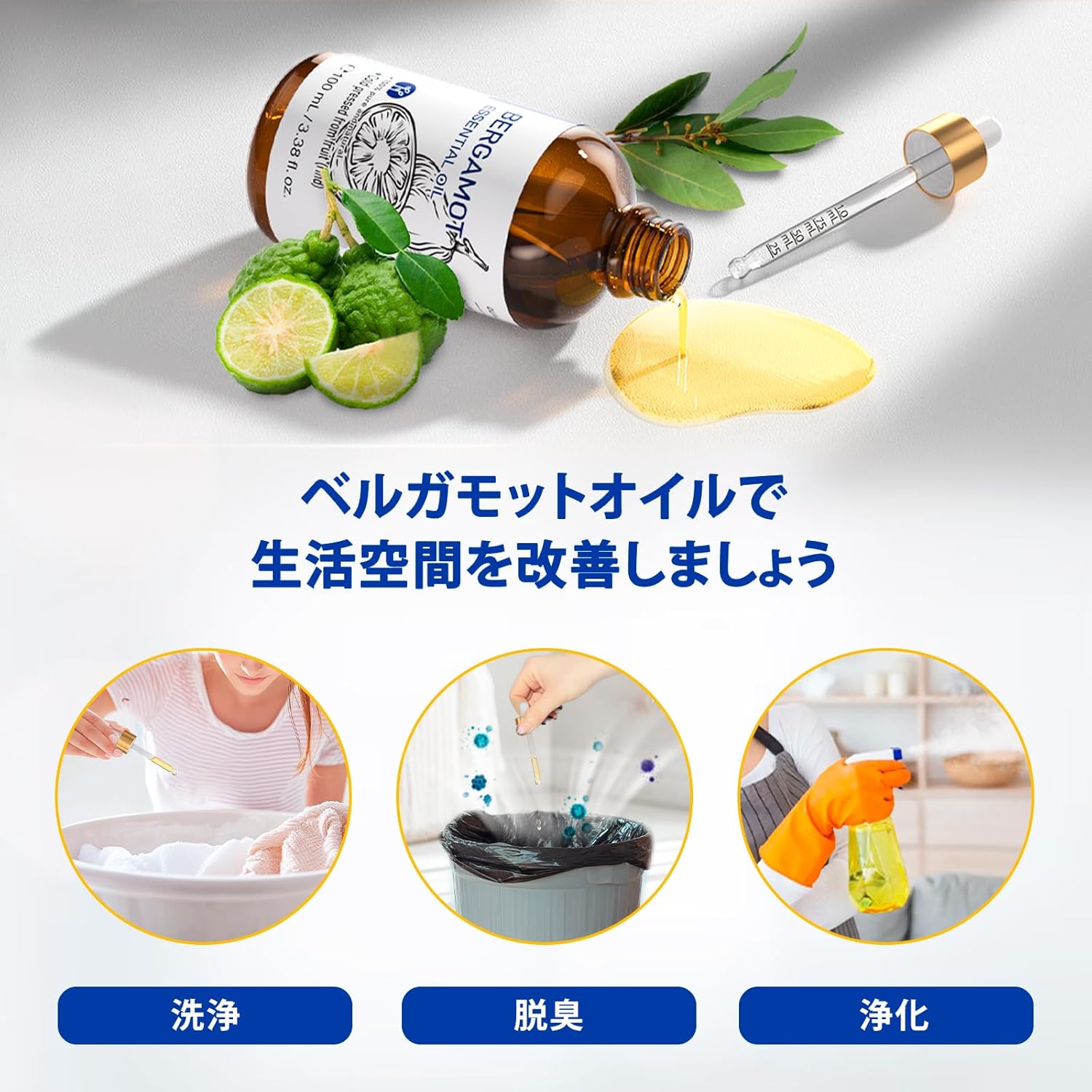 HIQILI Bergamot Essential Oil for Diffuser, Skin, Hair, DIY, 100% Pure & Natural - 3.38 Fl Oz (100 mL)