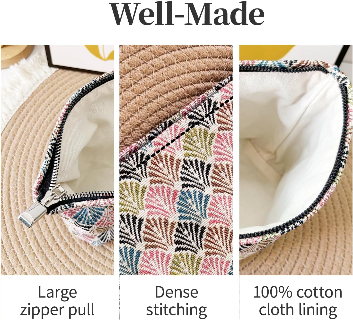 - Exquisite Floral Woven Fabric Makeup Bag: Made with premium woven fabric featuring a vibrant floral theme, adding a touch of elegance and nature to your daily organization.
