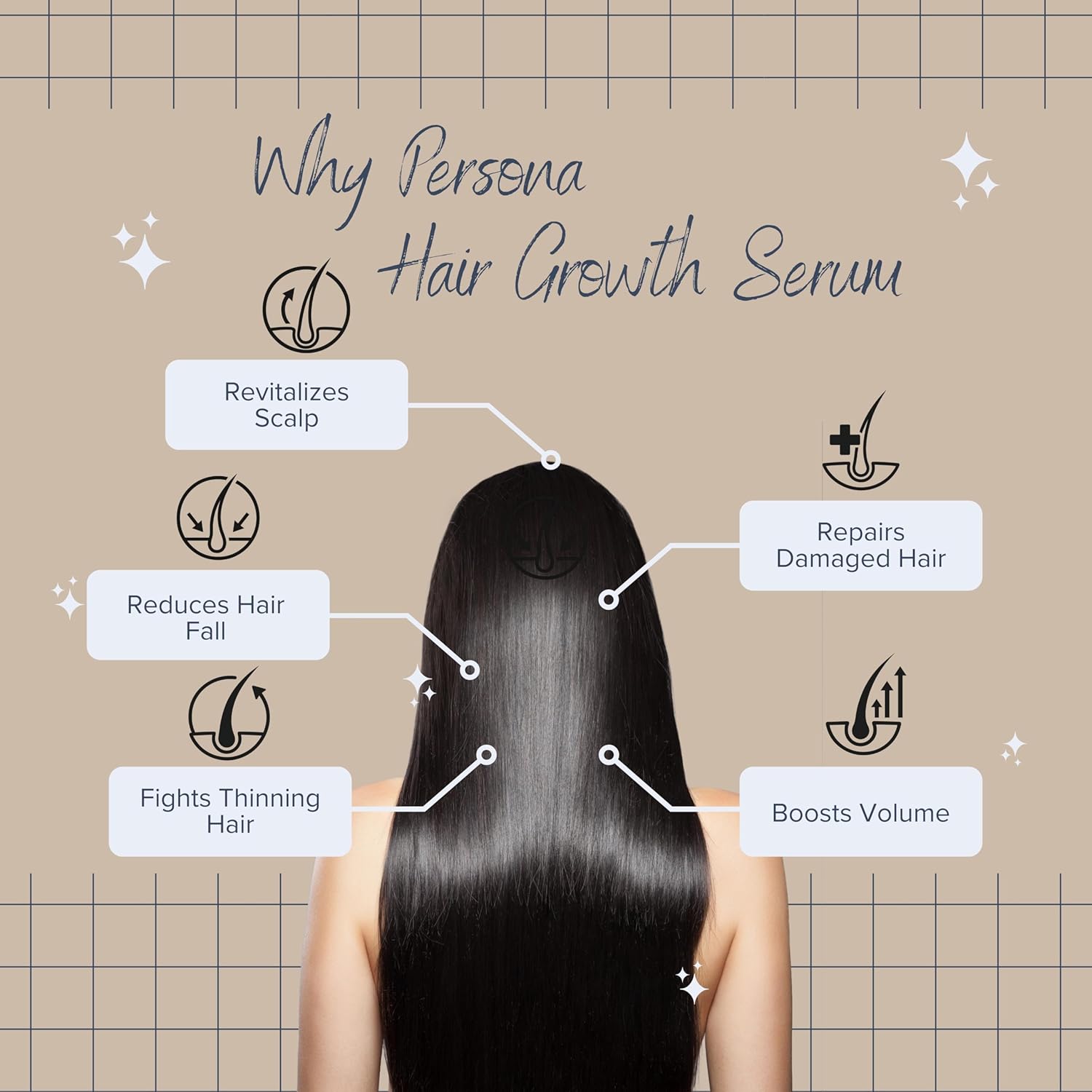 - Advanced Hair Growth Formula for Thicker, Fuller, Stronger Hair – Powered by Biotin, Castor Oil & Plant Extracts Revitalize thinning, damaged hair with Persona Beauty’s high-performance hair growth serum, expertly formulated with biotin, castor oil, and nutrient-rich botanical extracts. This intensive treatment penetrates the scalp to nourish follicles, reduce breakage, and improve density over time. Ideal for early-stage hair thinning, shedding, and overall scalp vitality for men and women of all hair types.