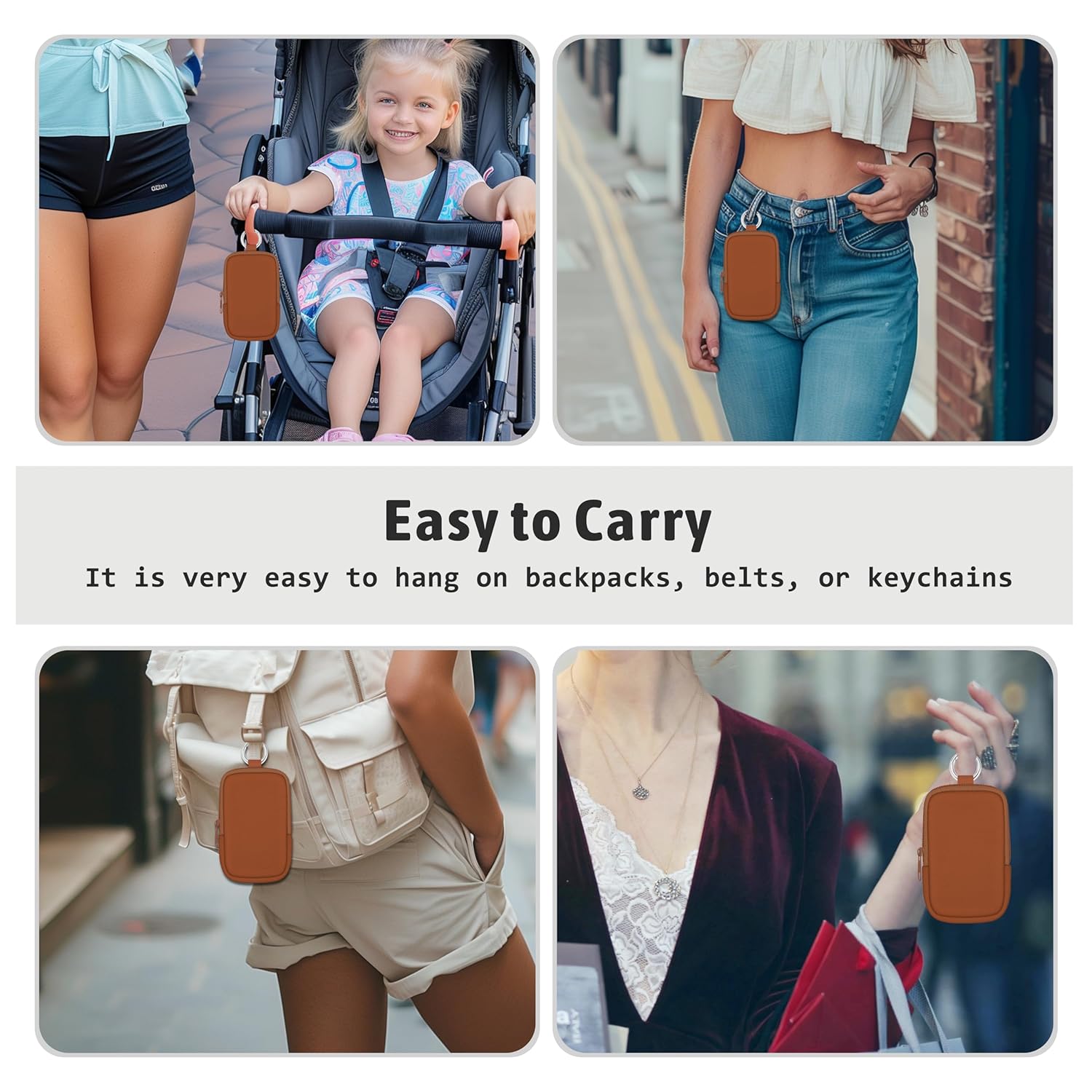 Hand Sanitizer Spray Case, Hand Sanitizer Holder Zippered Pouch, Cute Fashion Accessory with Snap Hook for Glow Mist and Power Mist 1FL OZ, Caramel