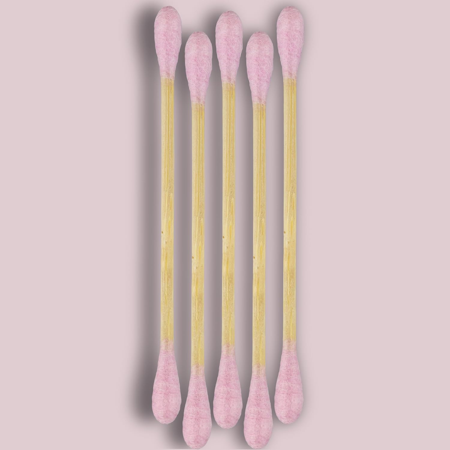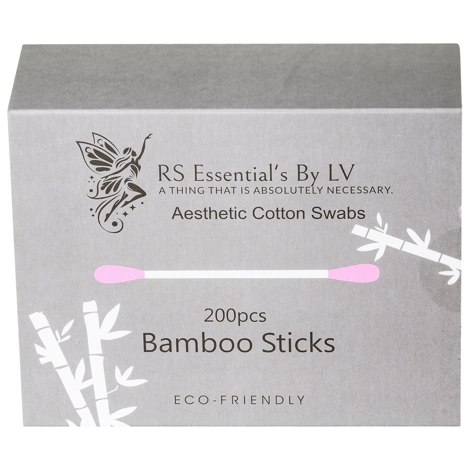 RS ESSENTIAL'S BY LV: Aesthetic Cotton Swabs Sticks Ear Swabs Bamboo swabs 200 Count Cotton Buds In 5 Colorful Colors (Pink)