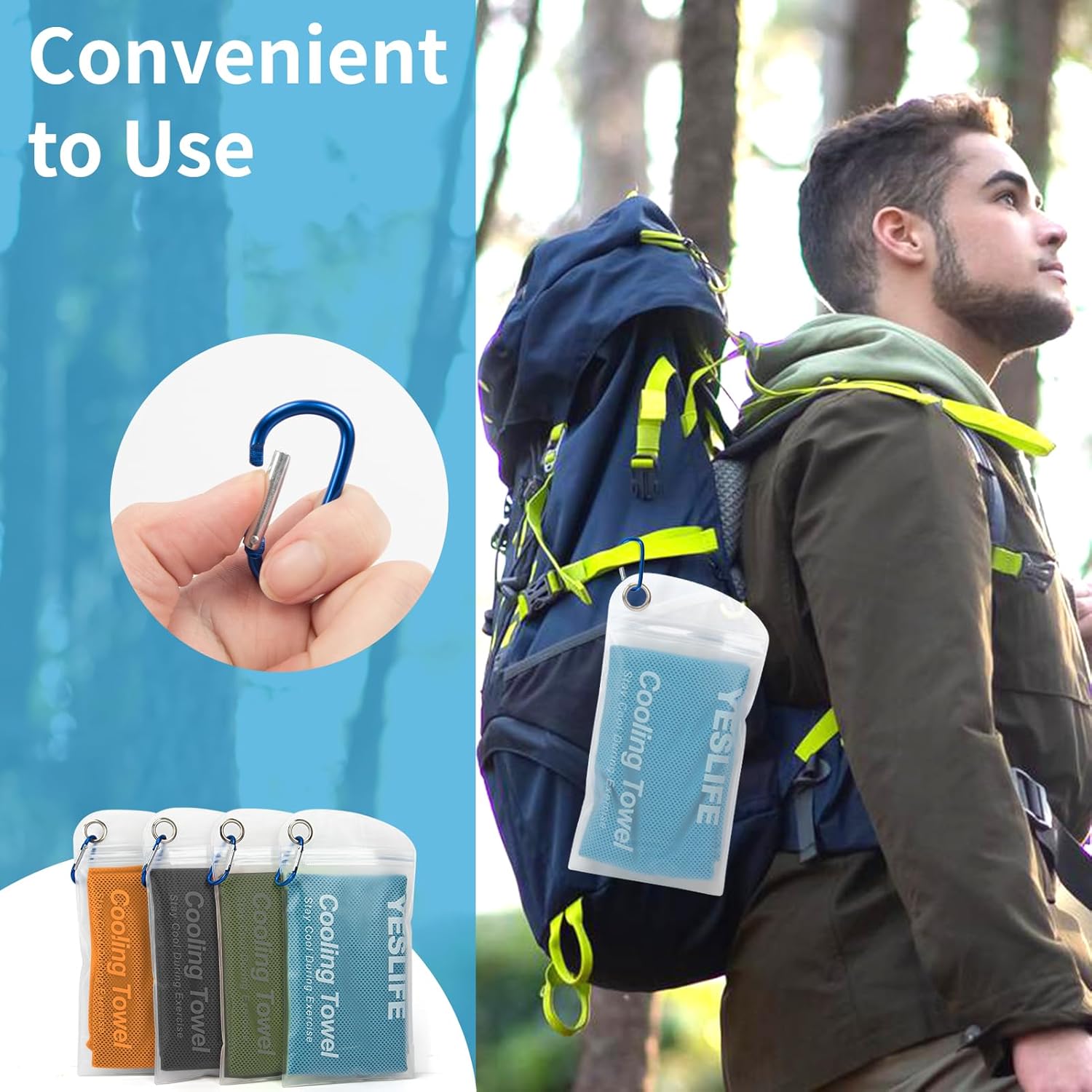YESLIFE 4 Pack Cooling Towel 40"x12", Gym Towels for Men and Women, Soft Breathable Workout Towels for Yoga, Running, Sport, & More (Black, Army Green, Orange, Blue)