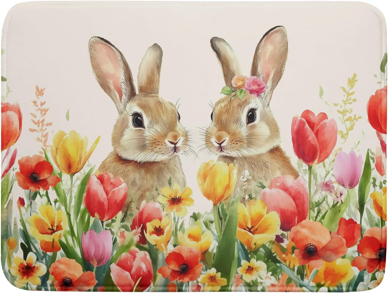 Easter Bunny Dish Drying Mat 18x24 inch Spring Floral Drying Pad Holiday Absorbent Microfiber Dishes Drainer Protector for Kitchen Counter