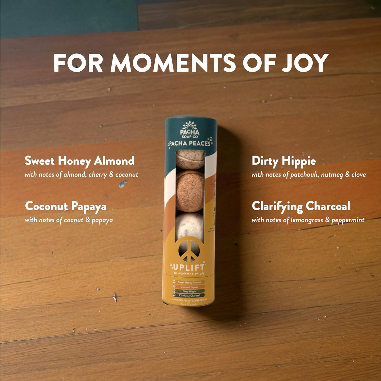 PACHA SOAP Co. Froth Bath Bomb, Pacha Peaces, Uplift, 2-Pack (8-Pieces) - Scents of Almond, Coconut, and Patchouli, & Lemongrass - Nourishing, Moisturizing, Naturally Derived & Handcrafted in The USA