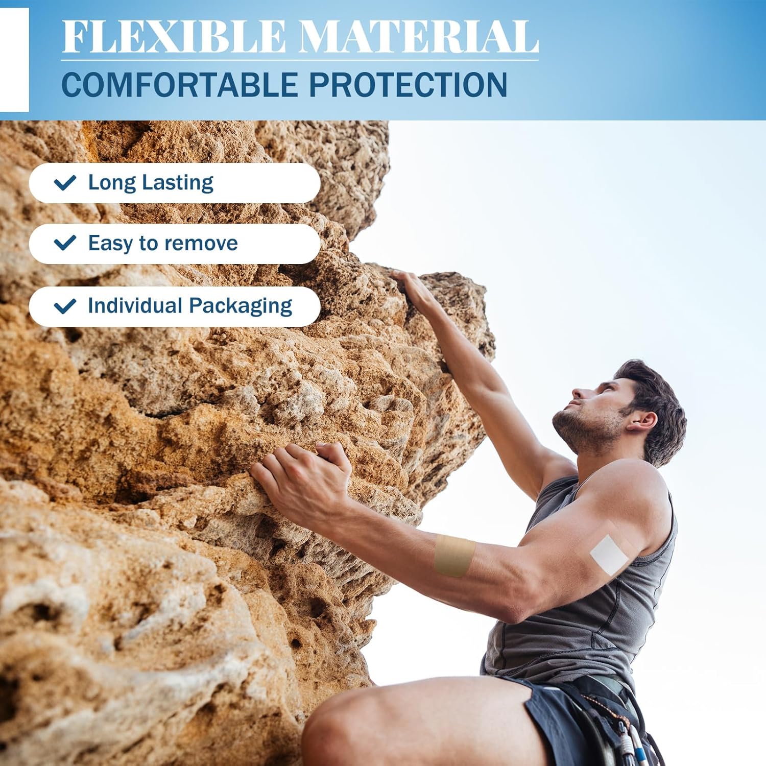 - Ideal Material: packaged individually for sterile use, these first-aid bandages offer long-lasting protection for injuries of all sizes; This feature, comprised of durable weave fabric, provides a cushioned layer designed to help you; The bandages are enhanced with a strong adhesive to ensure they stay in place; Each bandage is made with a unique four-sided seal to protect against dust