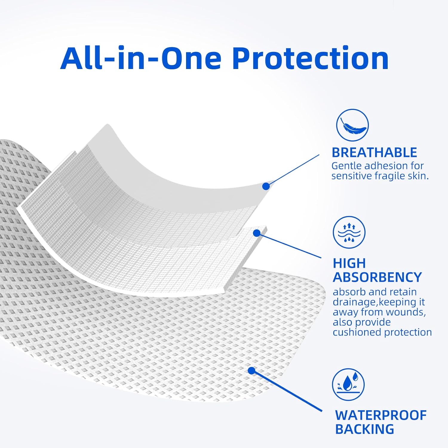 - 【All in One Protection】- Niceful Island Dressings can be used as primary or secondary dressing for wound care. Our non-adherent pad won't stick to the wound during the wound healing processes to occur with less pain and trauma, while the adhesive border provide excellent adhesion, yet is gentle to the skin.