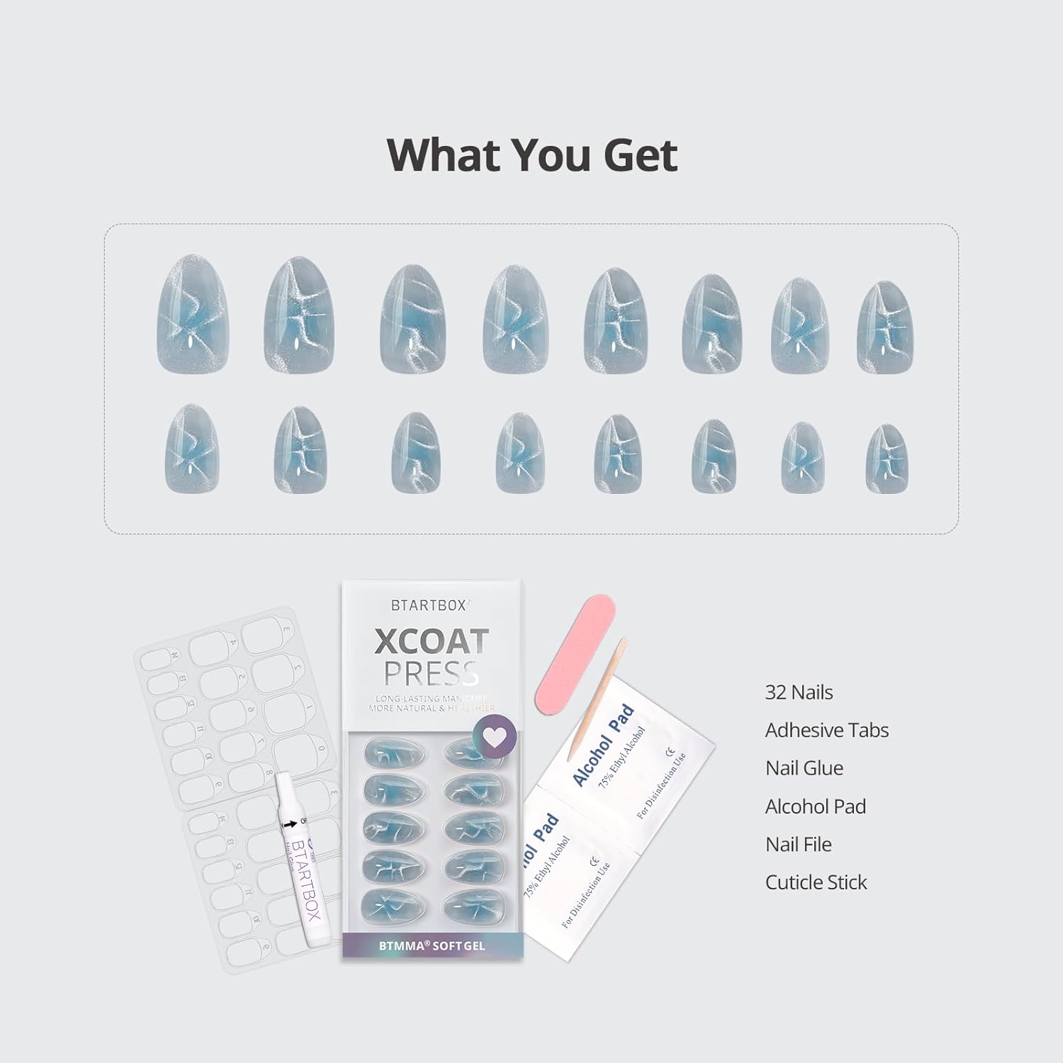 - Everything You Need Included: 32 nails (16 sizes), nail glue, adhesive tabs, nail file, wooden stick, alcohol pads, and easy guide. No guesswork β just perfect nails in a box