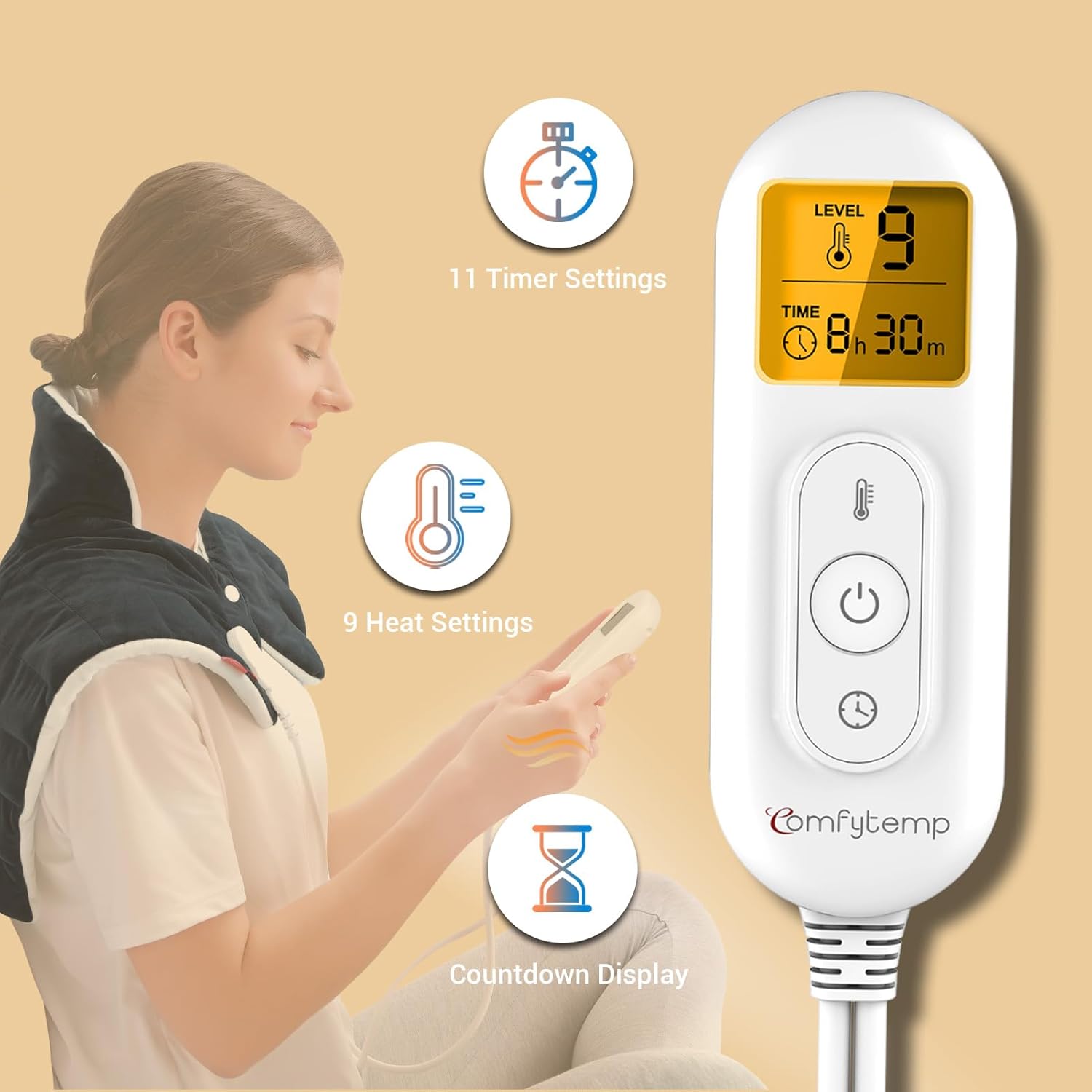 Comfytemp Heating Pad for Neck and Shoulders and Back, Weighted Electric Heat Pad for Pain Relief, 2.6lb Large Heated Wrap, 9 Heat Levels, 11 Auto-Off, Gifts for Women Men Dad, Black