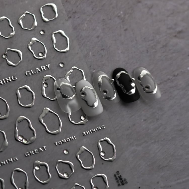 Silver Gold Nail Art Stickers Decals 5D Embossed Self Adhesive Nail Decals for Nail Art Silver Gold Irregularity Nail Stickers for Women Gold Nail Art Design for DIY Manicure Decoration