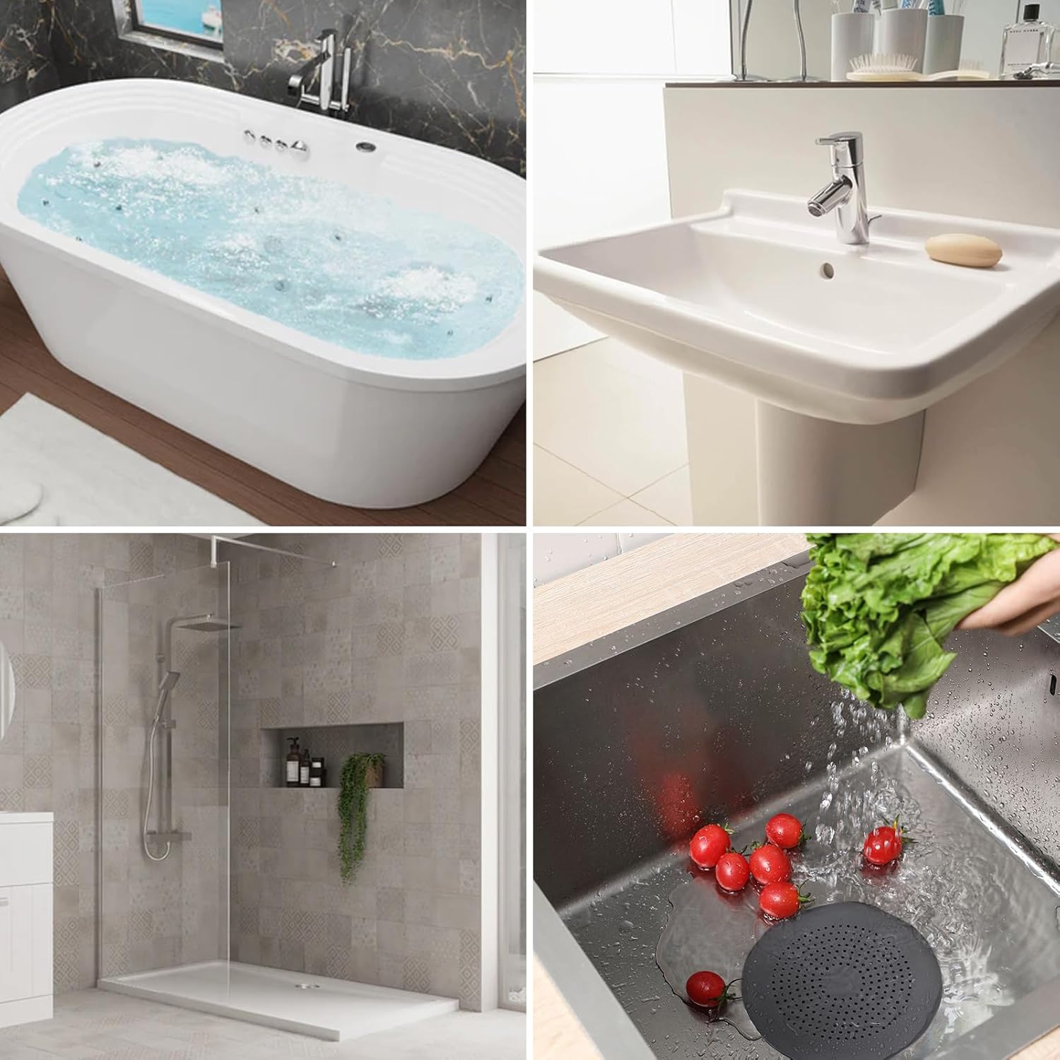 - Efficient Anti-Clog Design: These silicone drain covers are designed to prevent clogs by effectively catching hair and debris before they enter your plumbing. The fine mesh strainer ensures smooth water flow while keeping your drains clear.