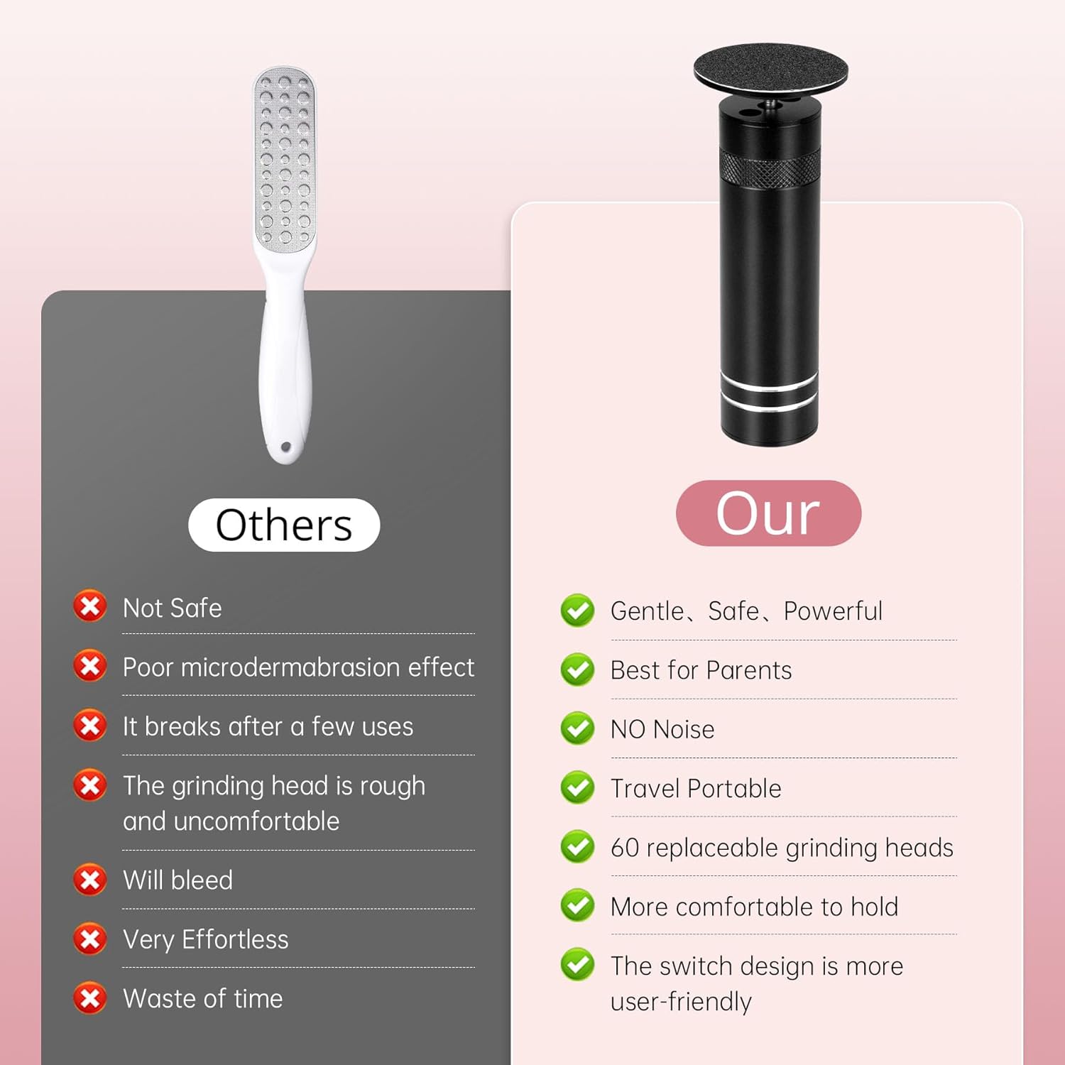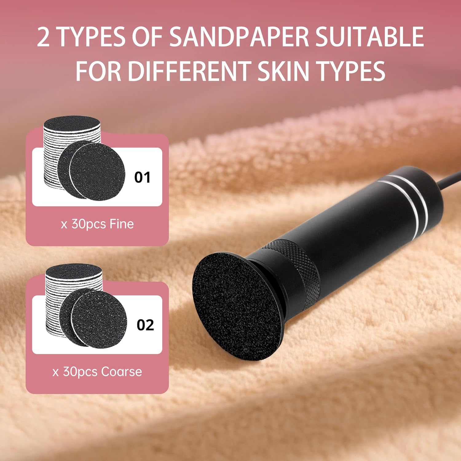- 【60 PCS Replacement Sandpapers】: Our electric feet callus remover comes with 60 Pcs Sandpaper.Easy to apply and remove,clean and hygienic,making foot maintenance more convenient and effective, offering versatility for different foot care needs.It lasts longer and safe than traditional Foot Scrubber.