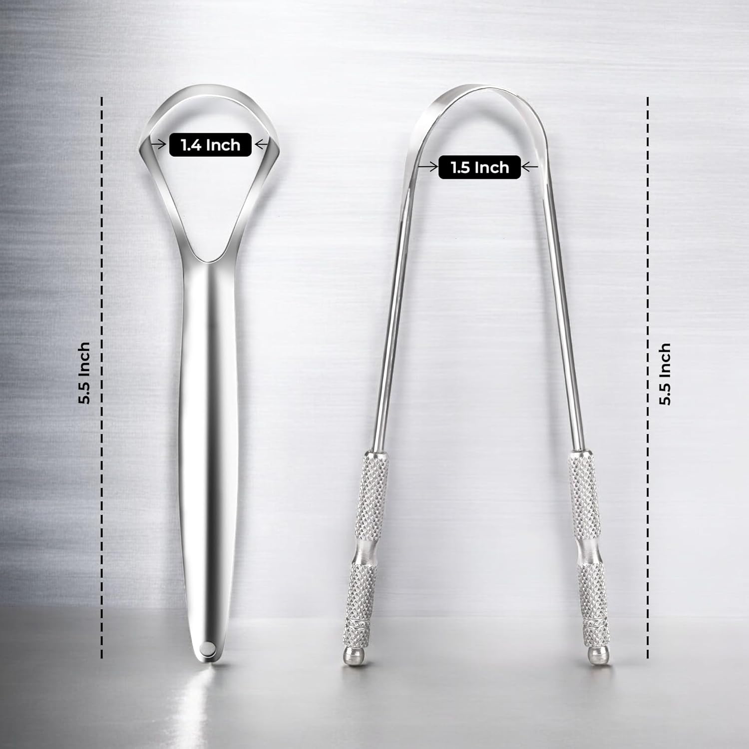 HOKIN Tongue Scraper for Adults with Travel Cases (2Pcs U & Spoon Combo Pack) - 100% Metal Tongue Cleaners, Tough Scrapers for Oral Hygiene